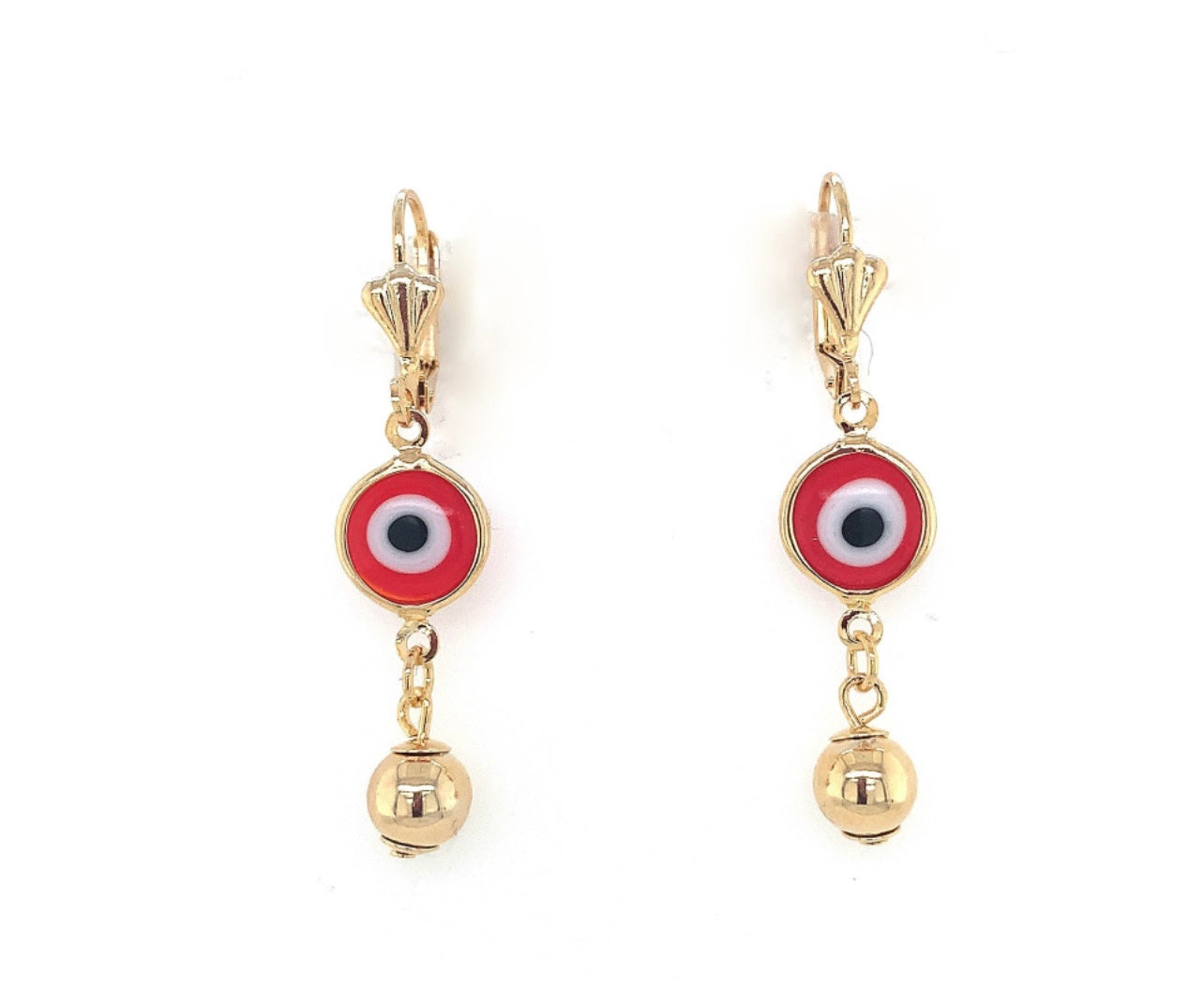 Pendientes colgantes con dije de círculo de cuentas de ojos rojos malvados