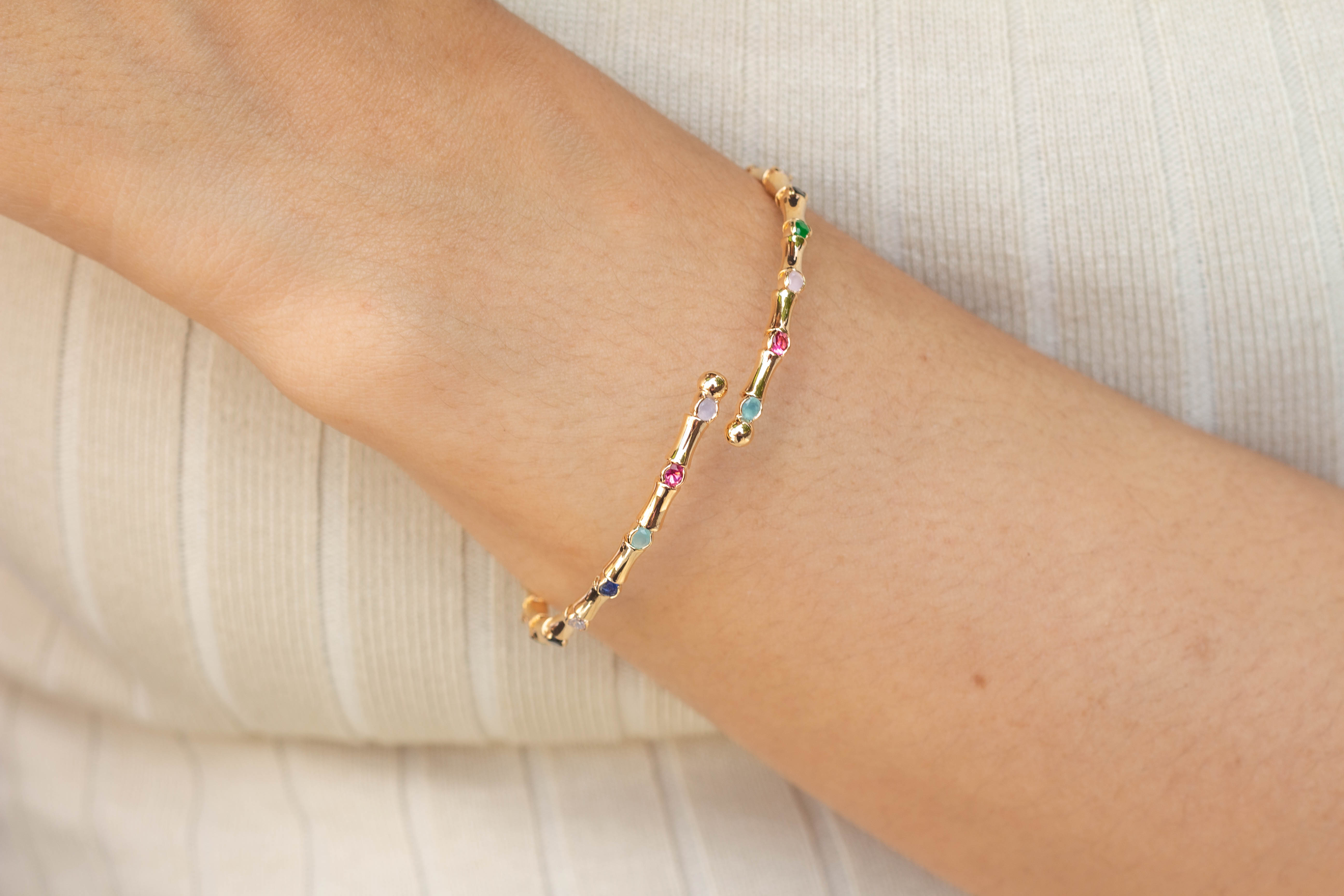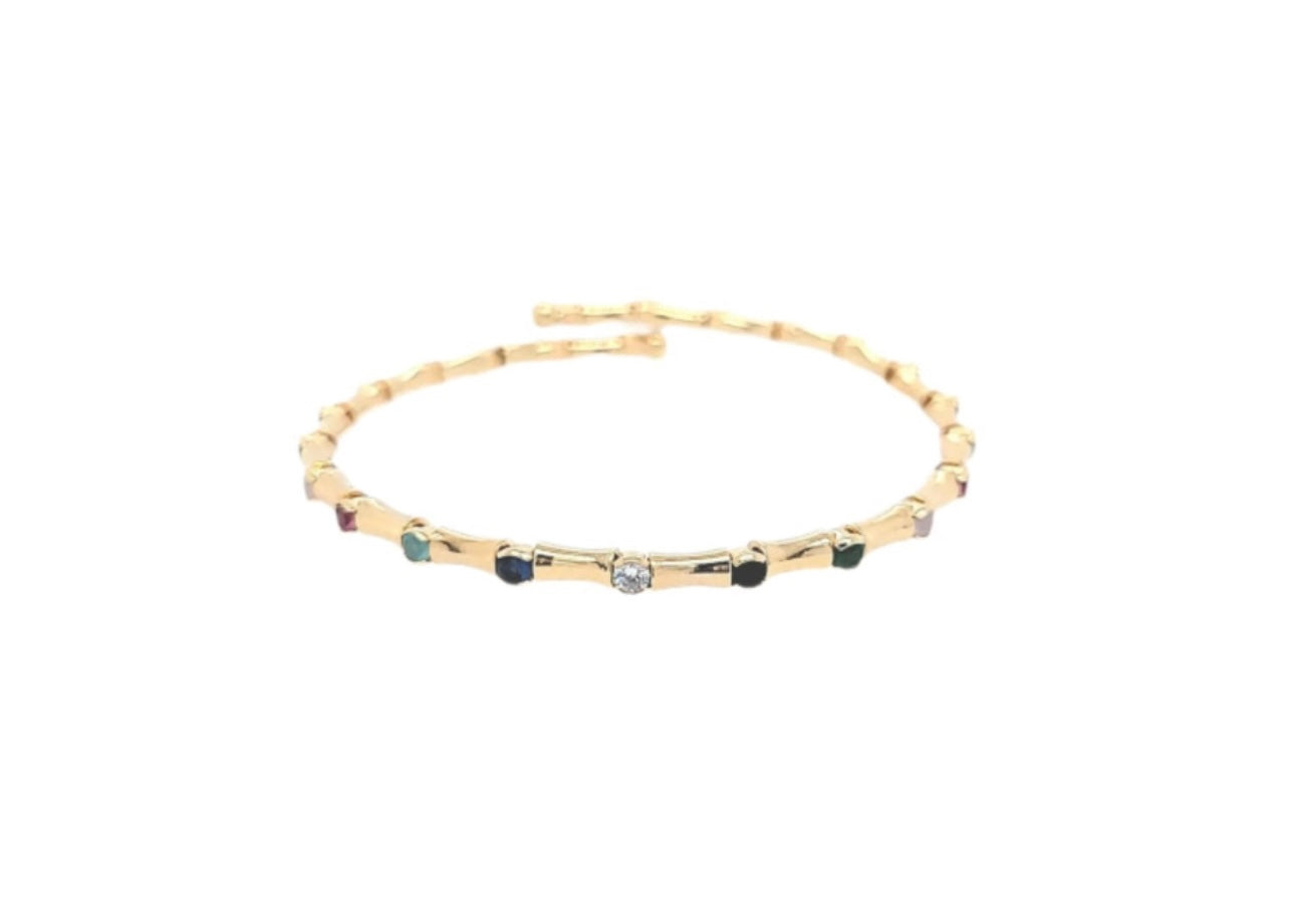 Pulsera de eslabones de bambú con piedras de colores