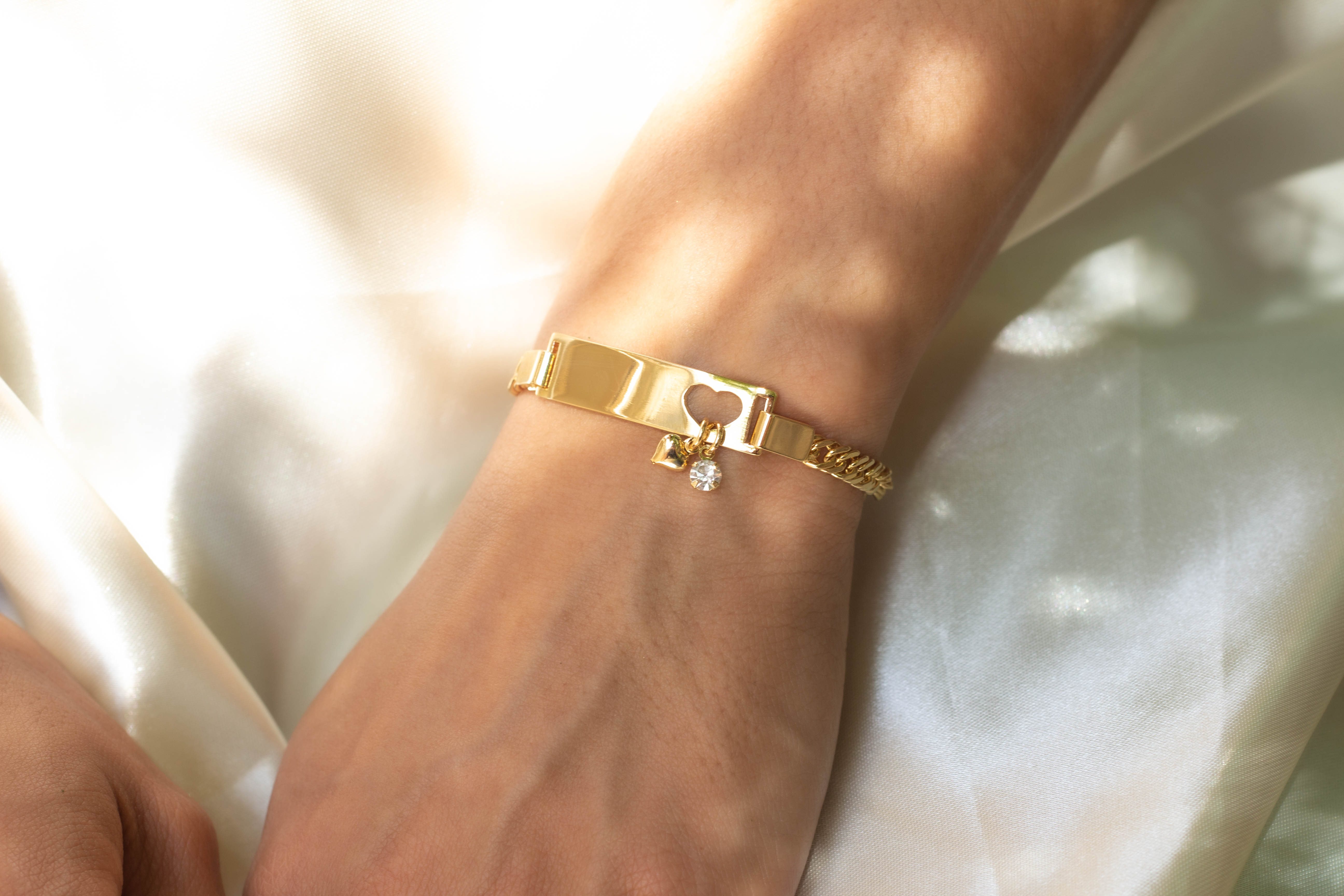 Pulsera infantil con corazón colgante y piedras de circonitas