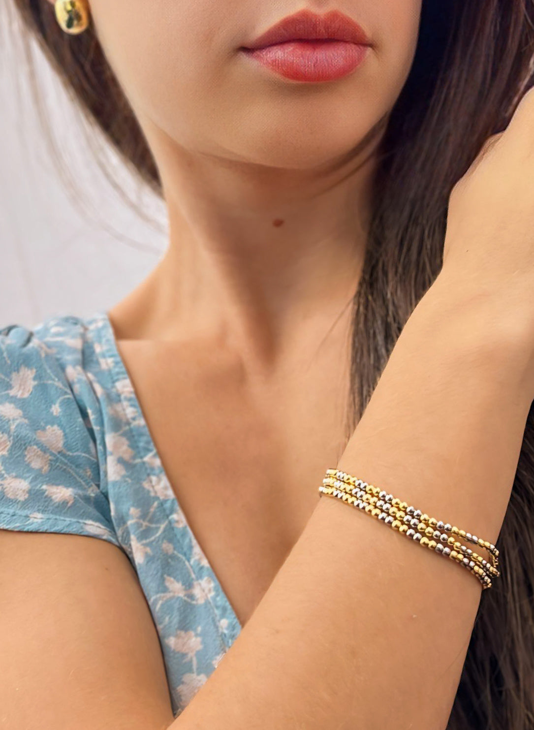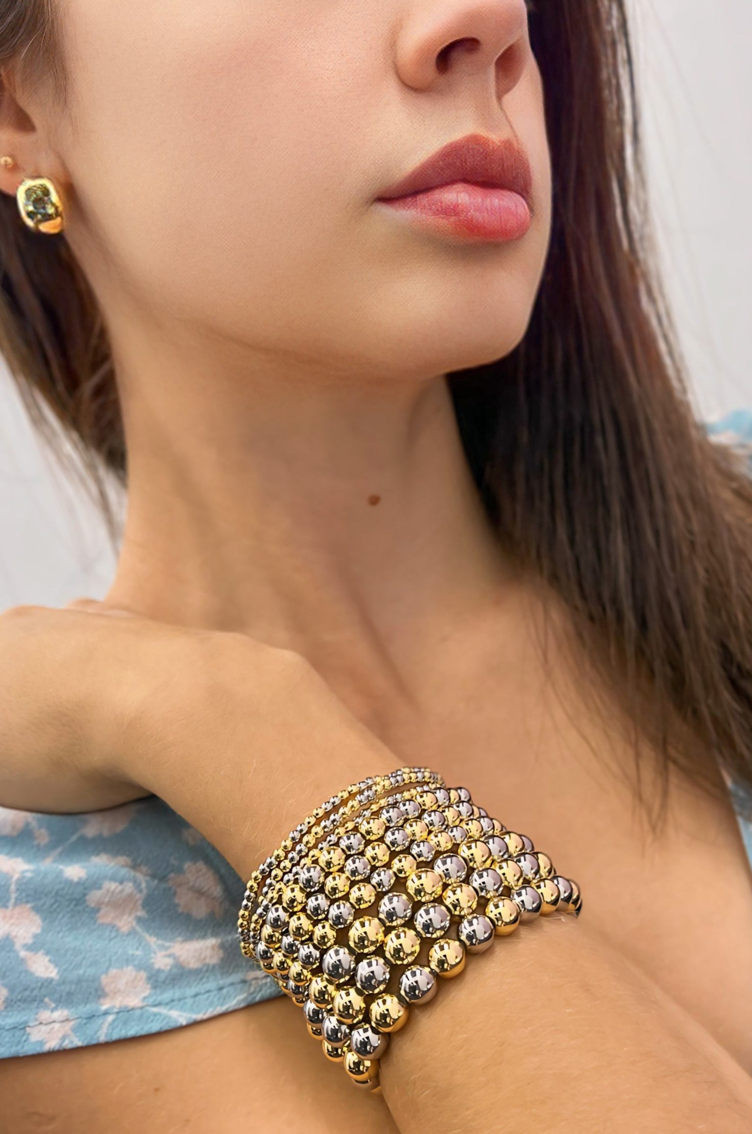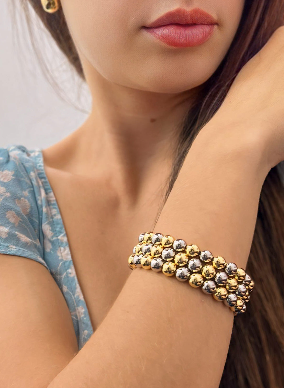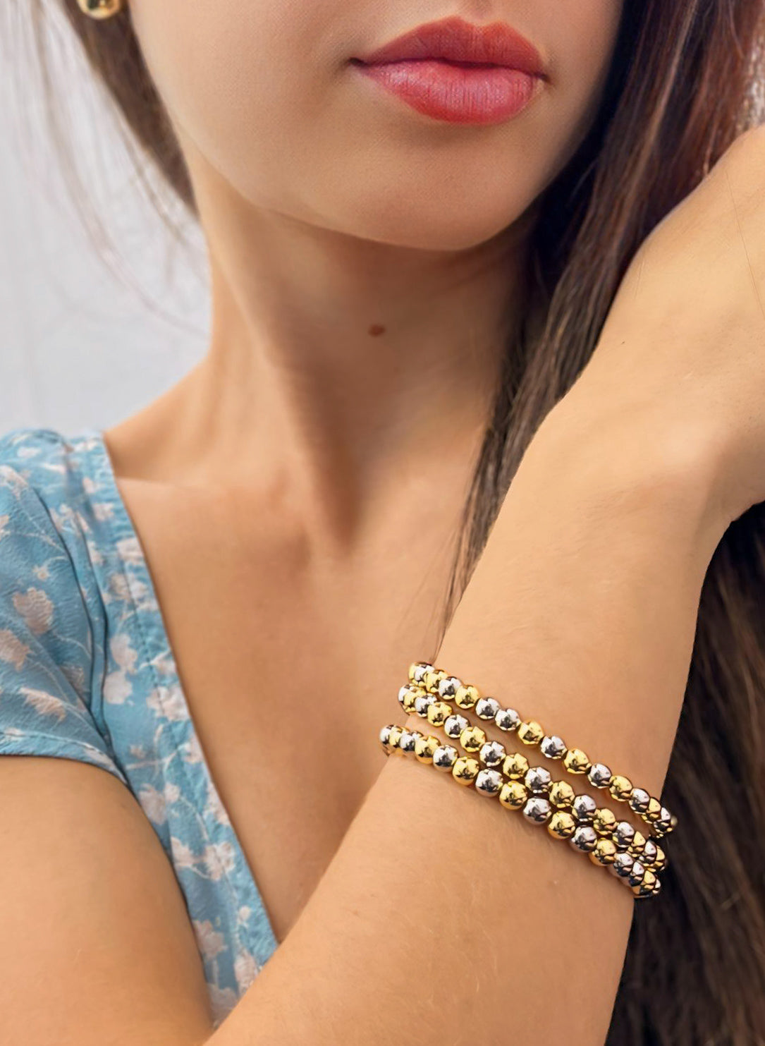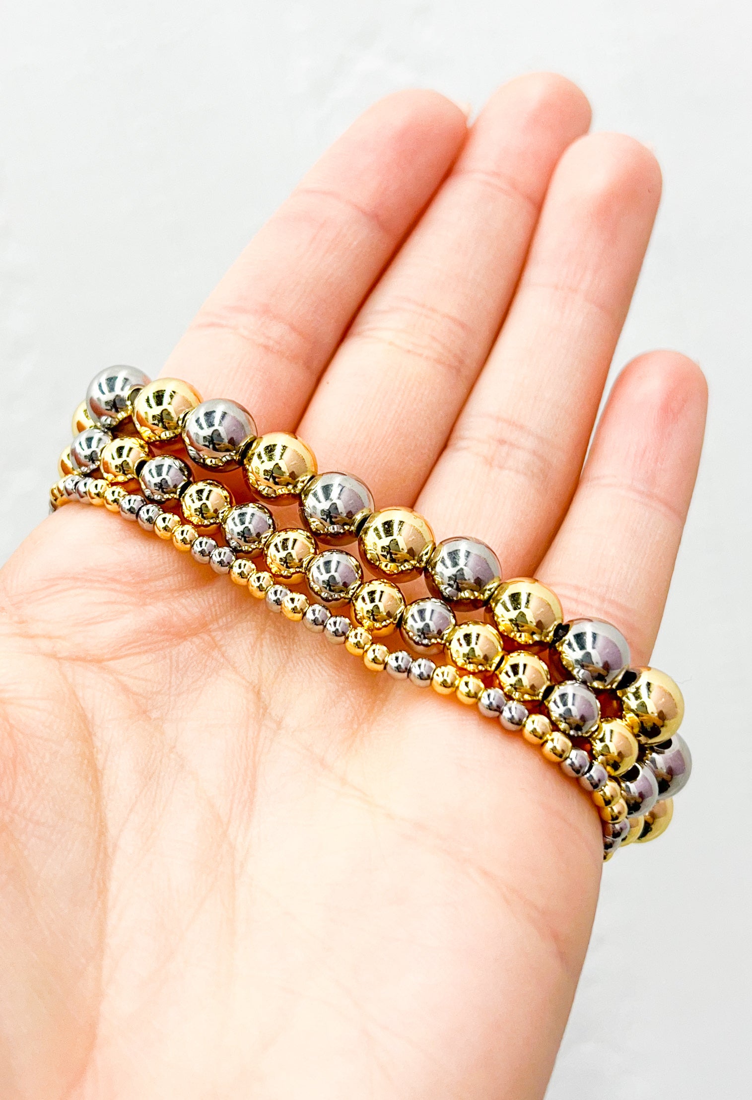 Two Tone Beaded Bracelet 3mm, 6mm, 8mm.