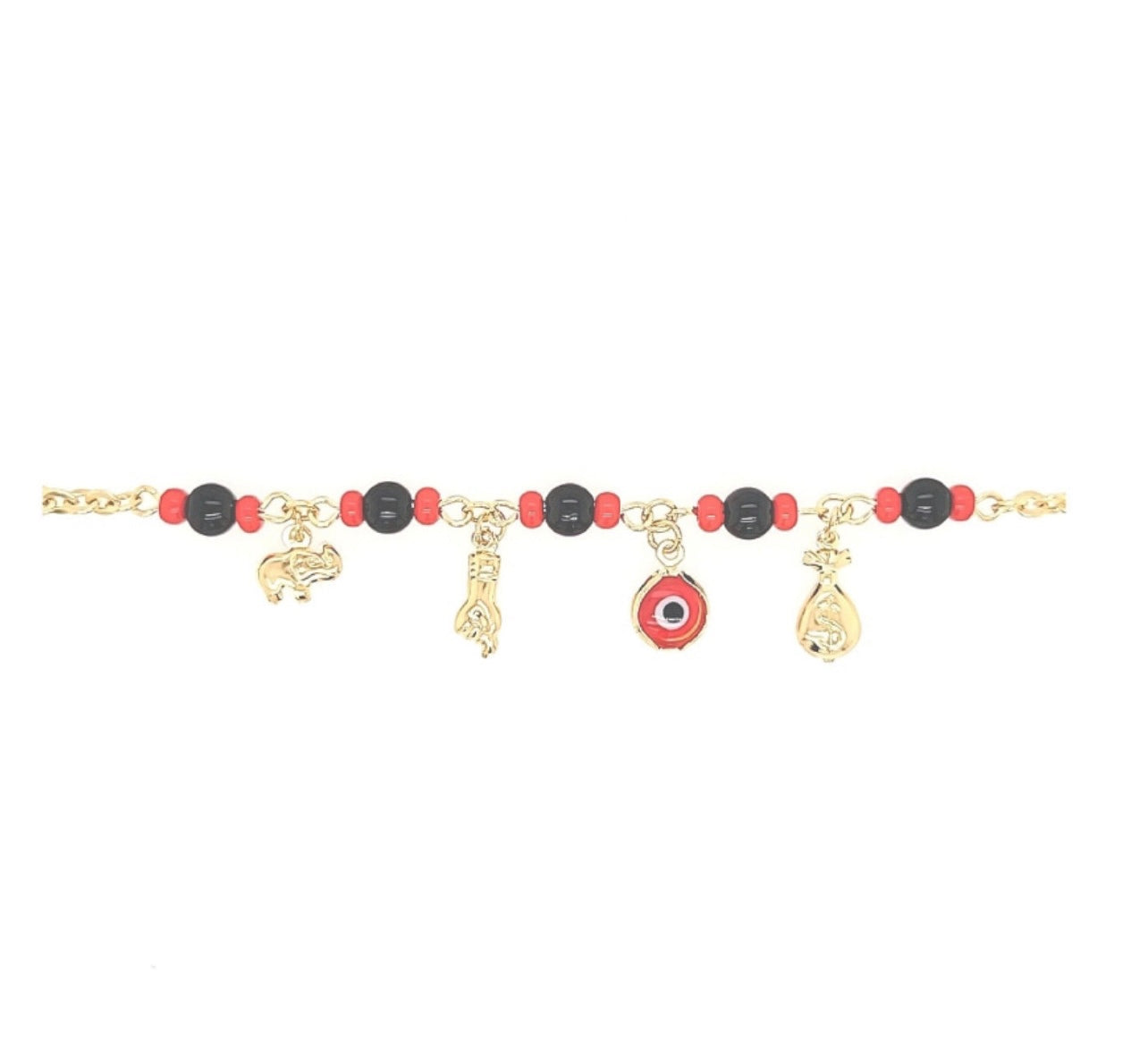 Pulsera Azabache Infantil con Amuletos de la Buena Suerte