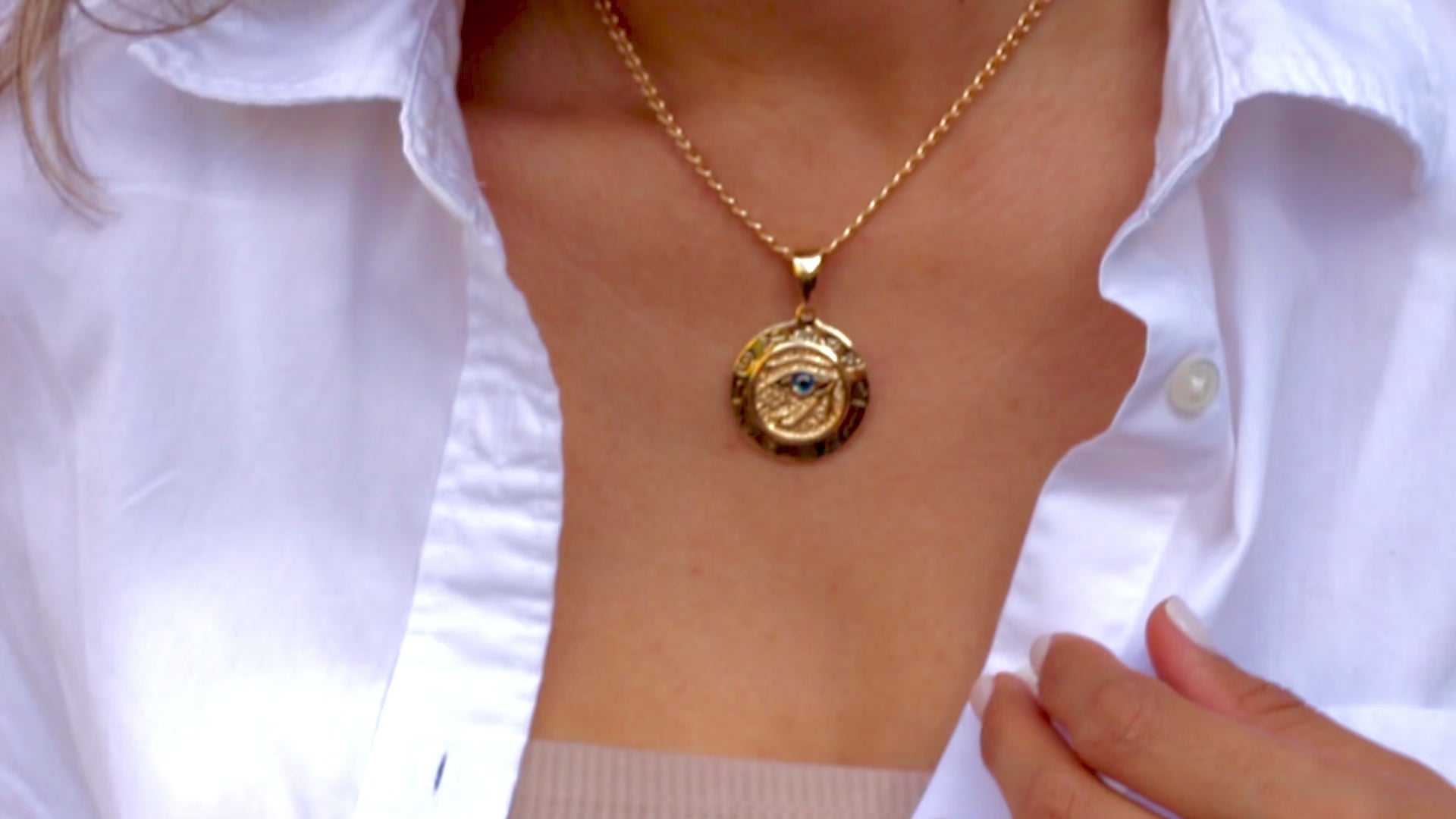 Luce clásico con este colgante con medallón de Horus con ojo de Egipto hecho de la mejor calidad de Brasil y luce muy moderno.