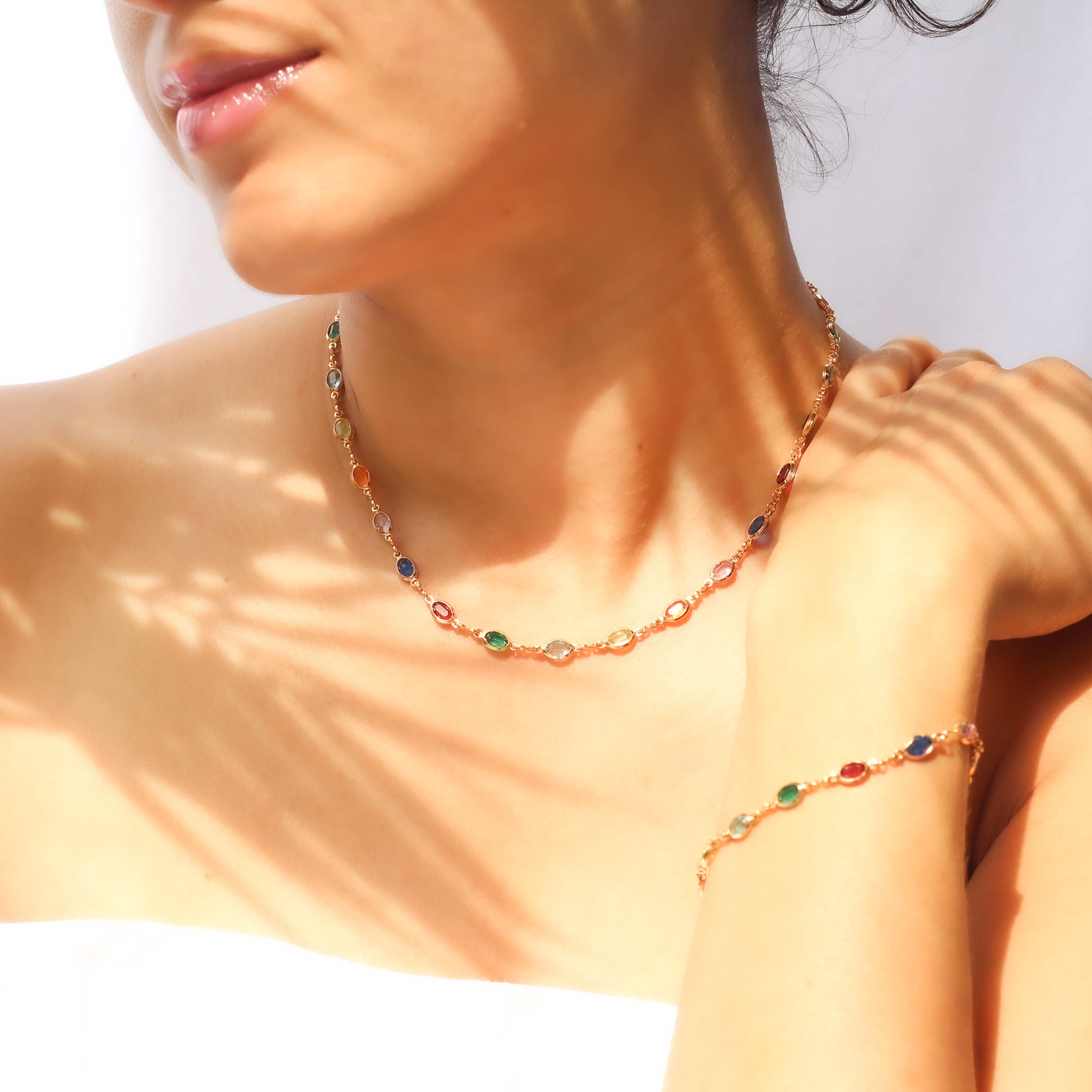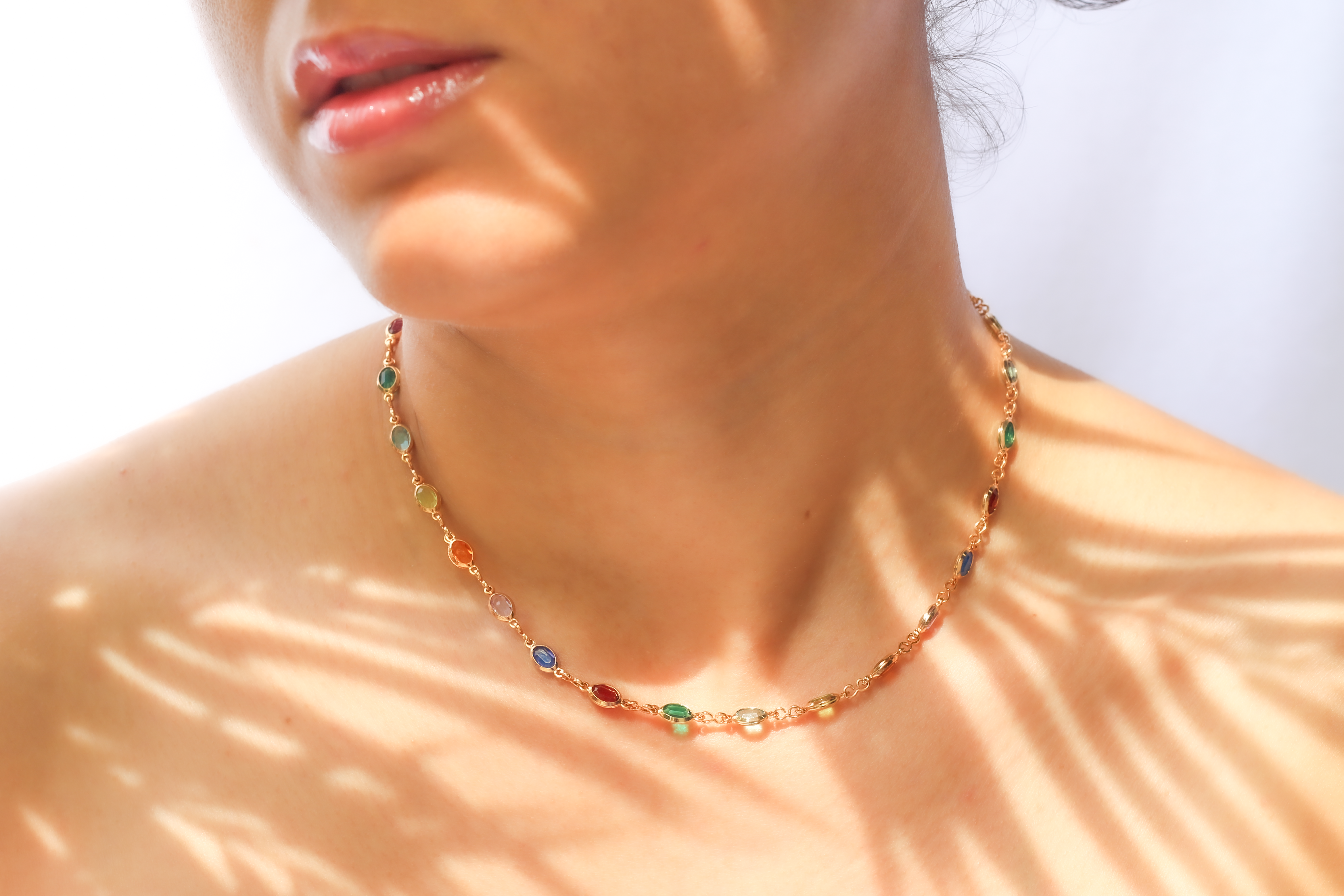 Luce preciosa con esta gargantilla de piedras coloridas hecha de la mejor calidad de Brasil.