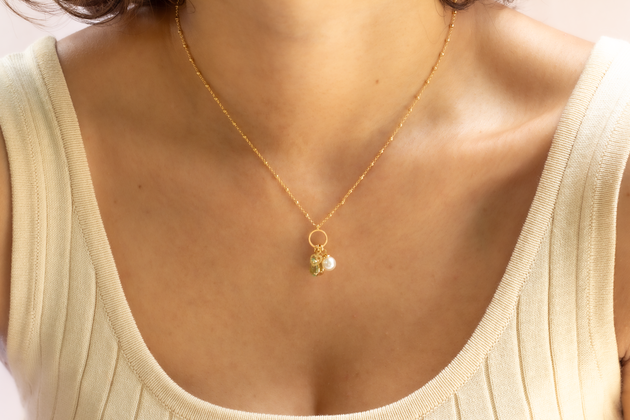 Luce preciosa con esta delicada cadena con dijes colgantes hecha de la mejor calidad de Brasil.