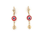 Luce hermosa con estos modernos aretes colgantes con forma de círculo con cuentas de ojos rojos y malvados de la mejor calidad de Brasil.
