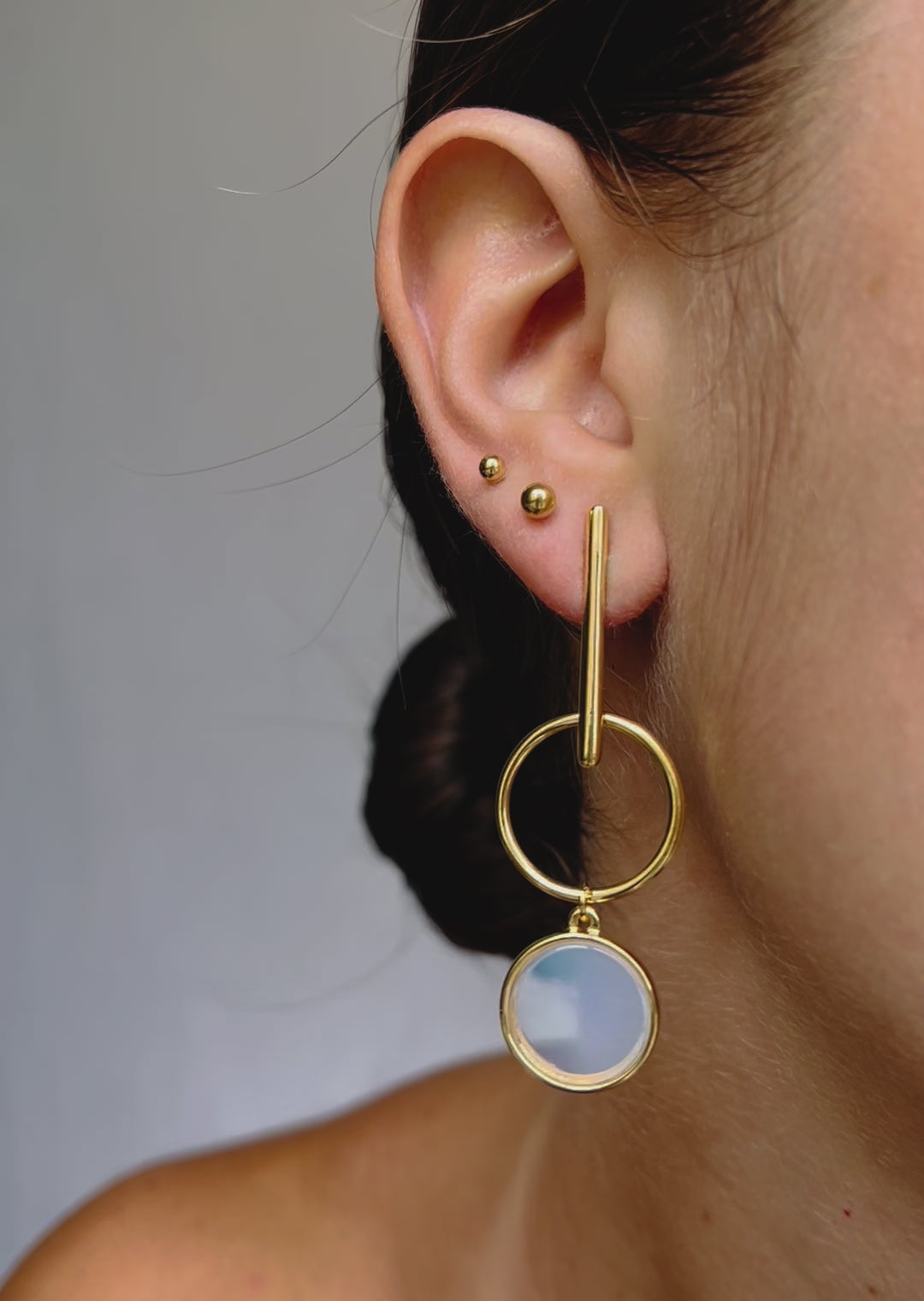These sleek and modern 18k gold-filled earrings bring a bold touch to any look. Featuring a polished bar and circle design, they are adorned with a round gemstone that’s available in three captivating colors. Each gemstone adds a unique charm, allowing you to personalize your style with elegance and sophistication. Perfect for making a subtle yet striking statement, these earrings will effortlessly complement both casual and formal outfits. Choose your favorite gemstone to reflect your personality and elevate your wardrobe. 🤎