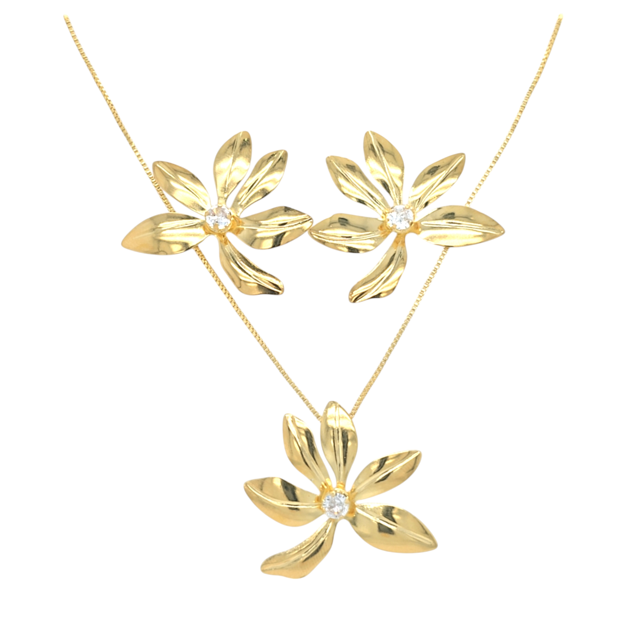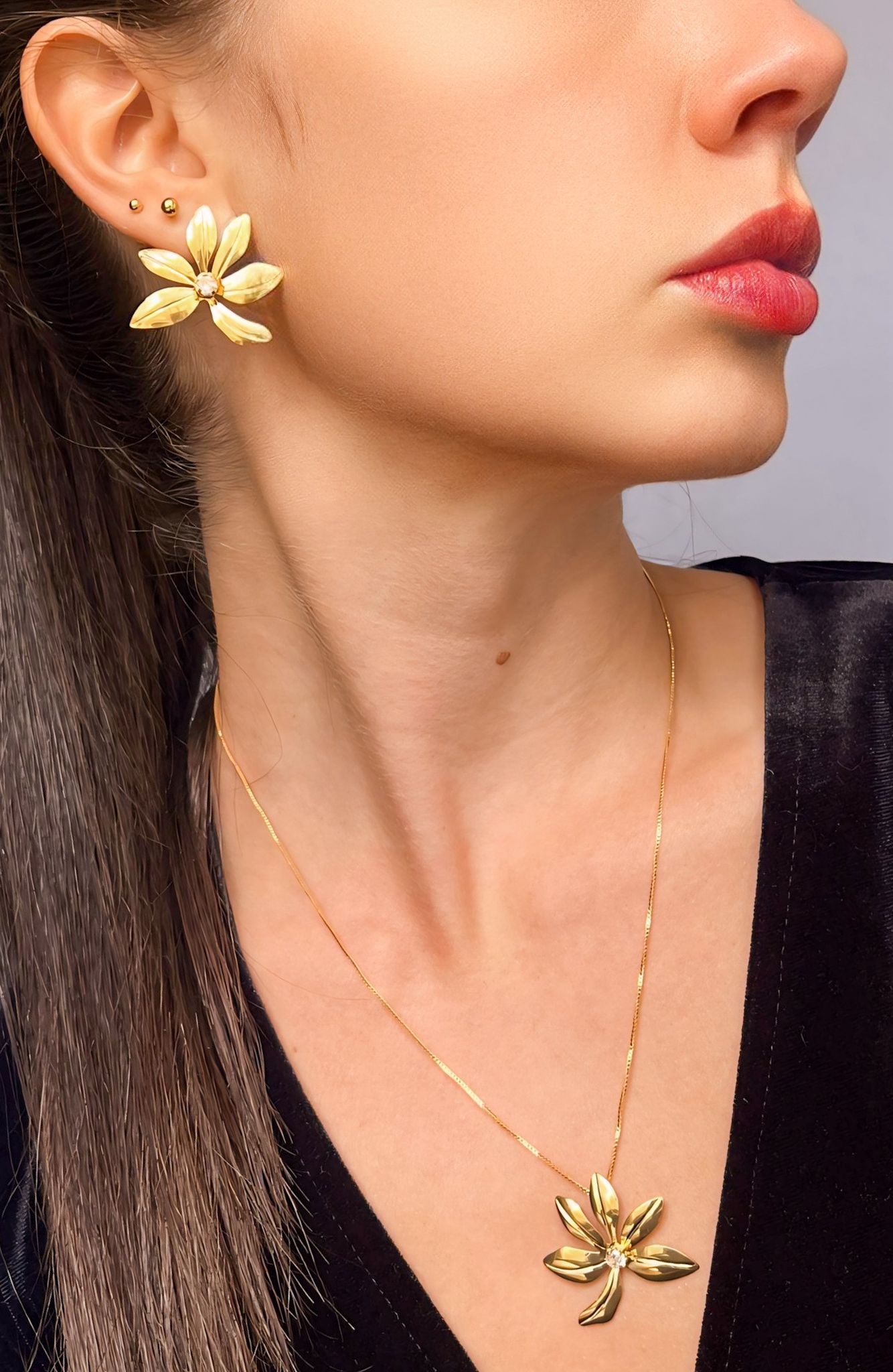 Celebrate nature’s beauty with this stunning floral jewelry set. The golden flower design, highlighted with a delicate centerpiece, exudes elegance and charm. Perfect for adding a touch of sophistication to your outfit, this set transitions effortlessly from daytime chic to evening glam. A must-have for anyone who loves timeless and feminine accessories. 🤎