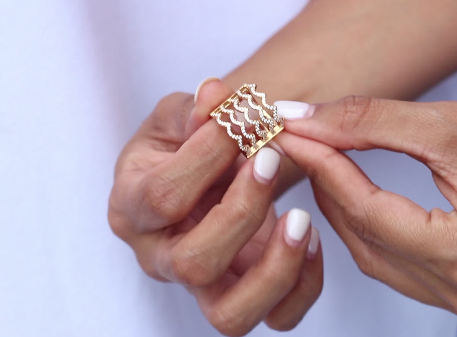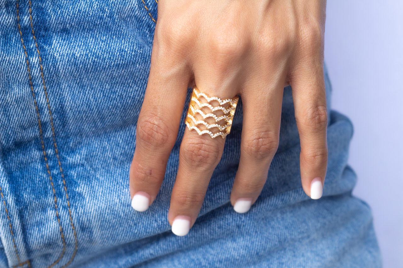 Luce hermosa con este sólido anillo diseñado con micropavé de ondas hecho de la mejor calidad de Brasil.