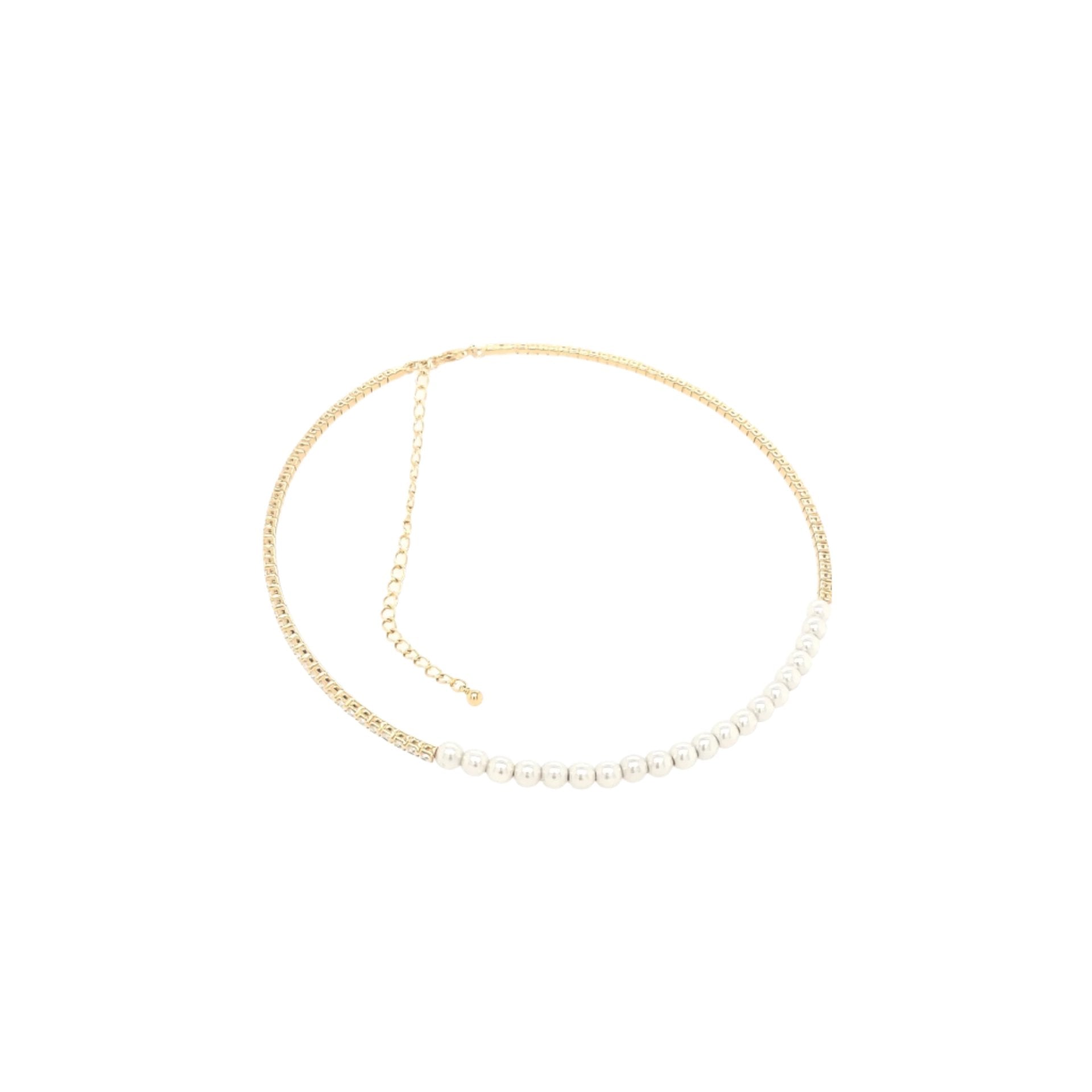 • Gargantilla estilo pedrería con perlas doradas.