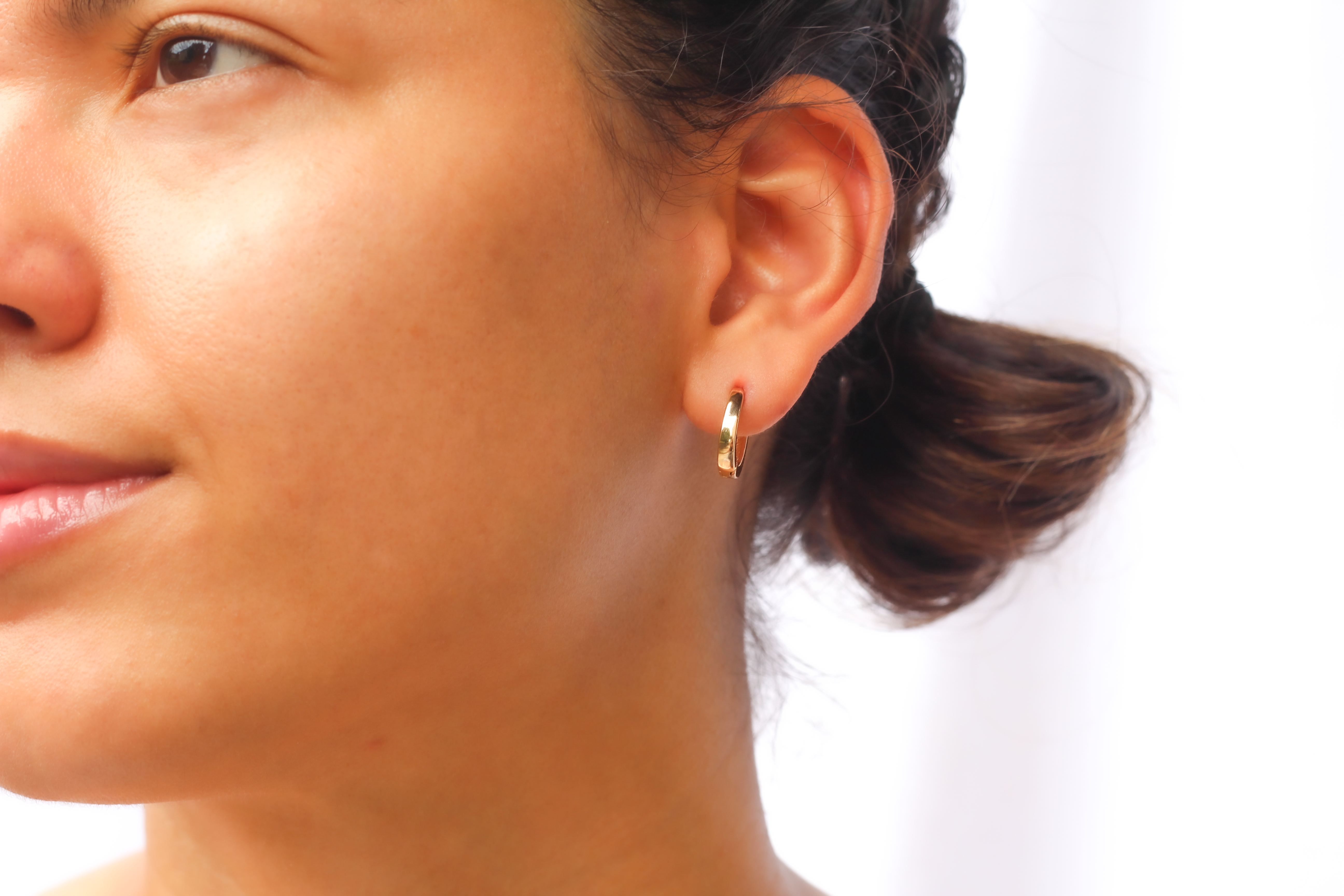 Aros que puedes usar todos los días Aretes Huggies con forma ovalada para darle el toque perfecto de glamour, nuestras piezas están hechas de la mejor calidad de Brasil.
