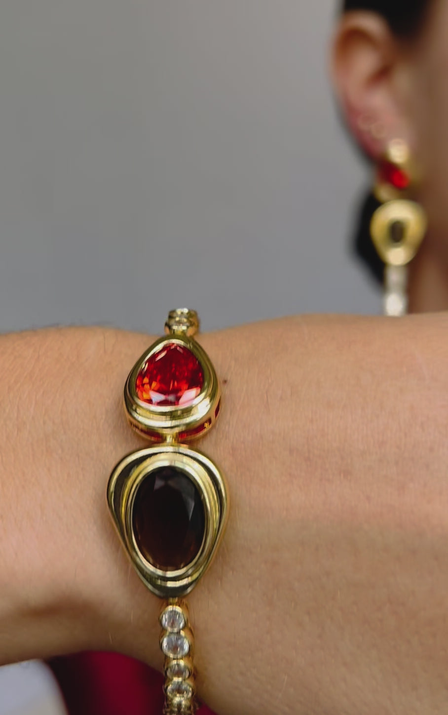 Elevate your look with these stunning pieces featuring vibrant gemstones and organic designs. The earrings and bracelet combine sophistication with modern charm, making them perfect for wearing together as a statement or individually for any occasion. đ€
