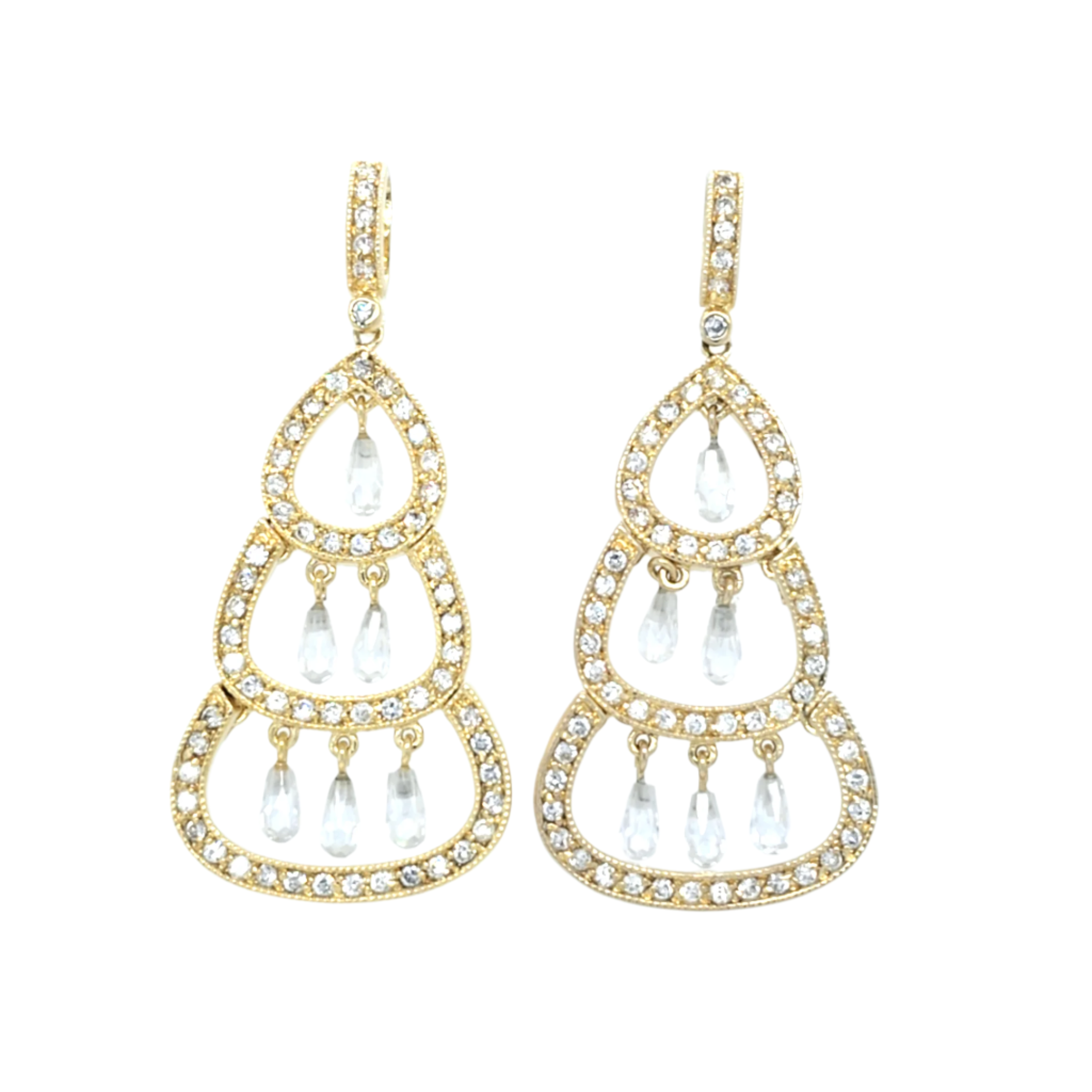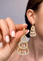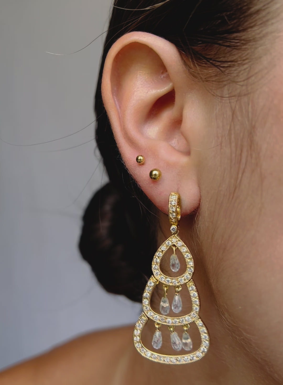 Illuminate your style with these stunning chandelier-inspired earrings. Designed in a tiered teardrop formation, each layer is adorned with shimmering stones, while delicate crystal drops dangle gracefully, capturing light like a classic chandelier. Perfect for adding elegance and sophistication, these earrings bring a touch of timeless glamour to any ensemble, making them ideal for special occasions or whenever you want to make a dazzling statement. 🤎