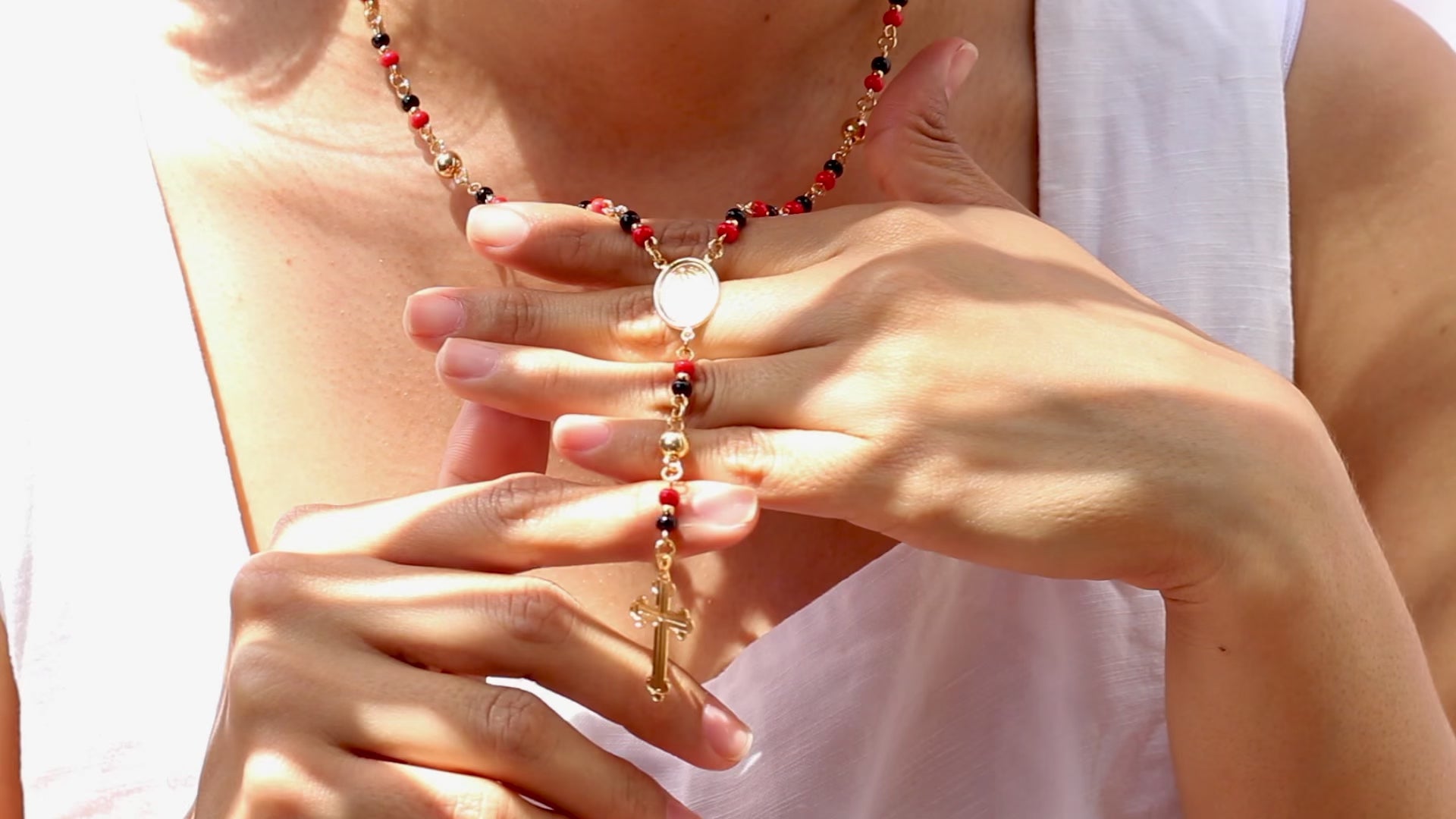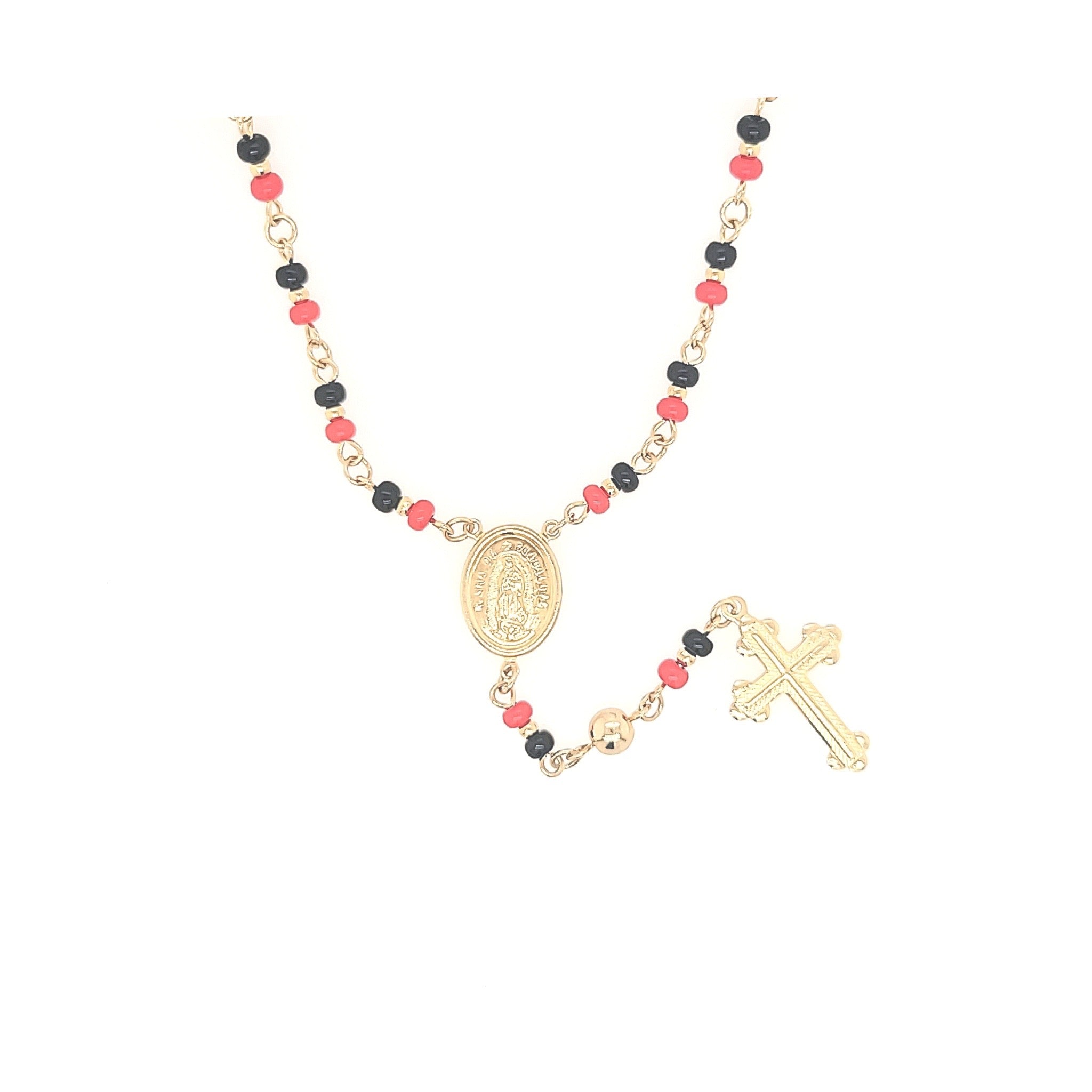 Black and Red Beads Simulated Azabache Guadalupe Rosary