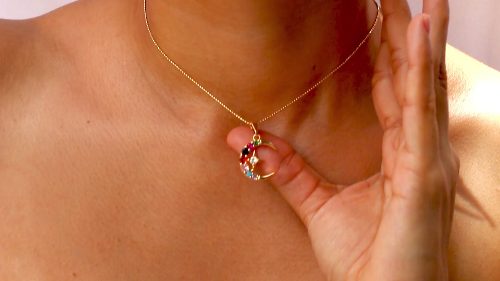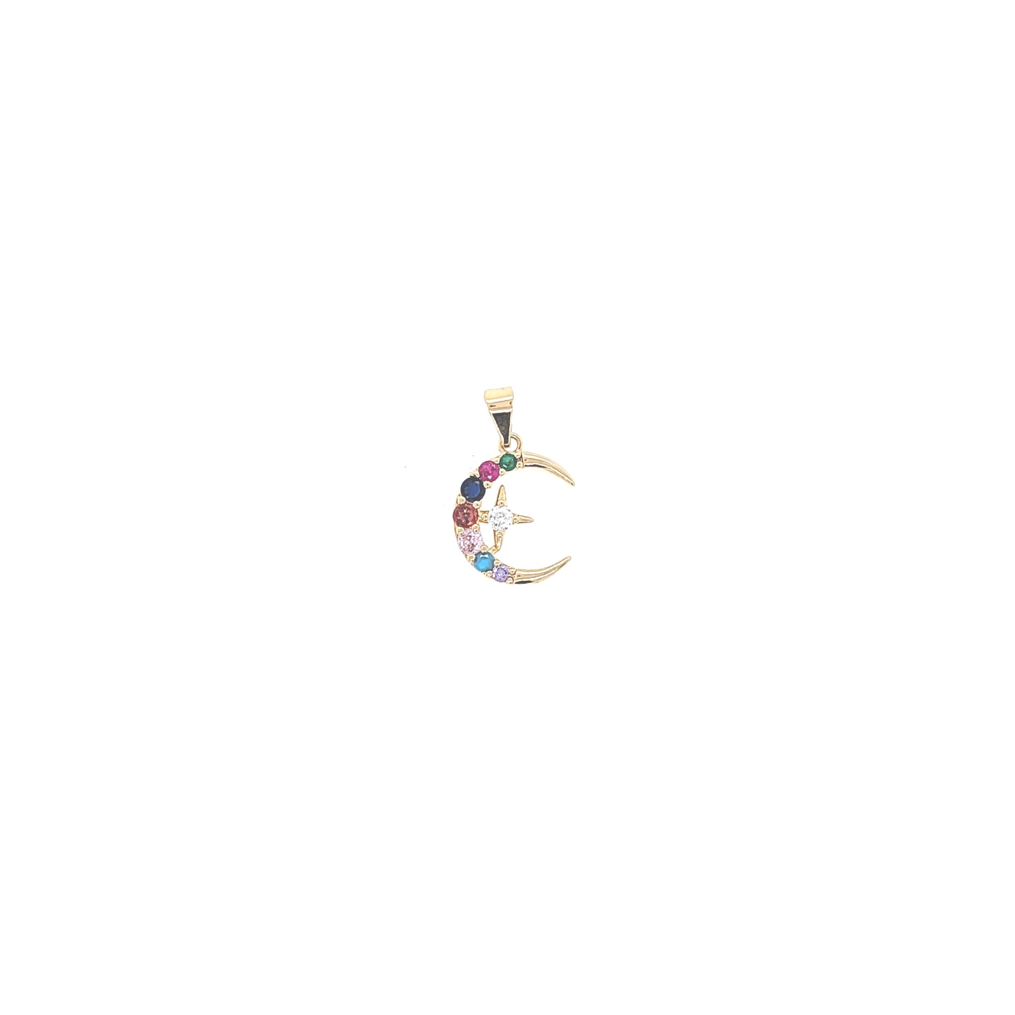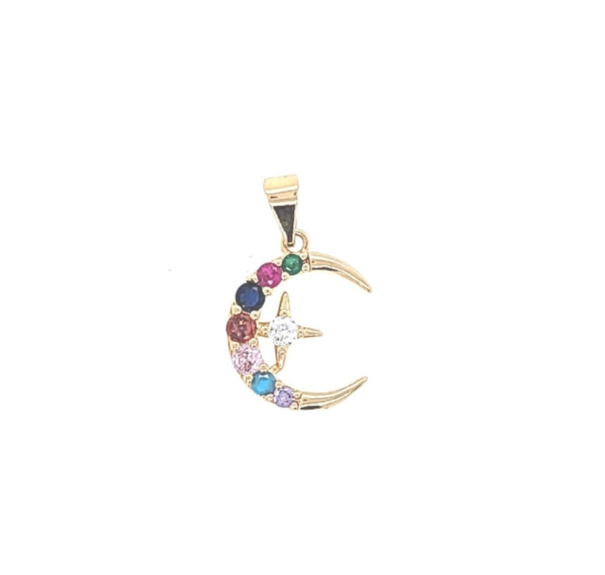 Add a pop of color to your jewelry collection with our Cz Stone Colorful Crescent Moon Star Pendant. The colorful crescent moon design adds a touch of fun and whimsy to any outfit. Made with high-quality stones, this pendant is sure to sparkle and shine, making it a must-have accessory. 🤎