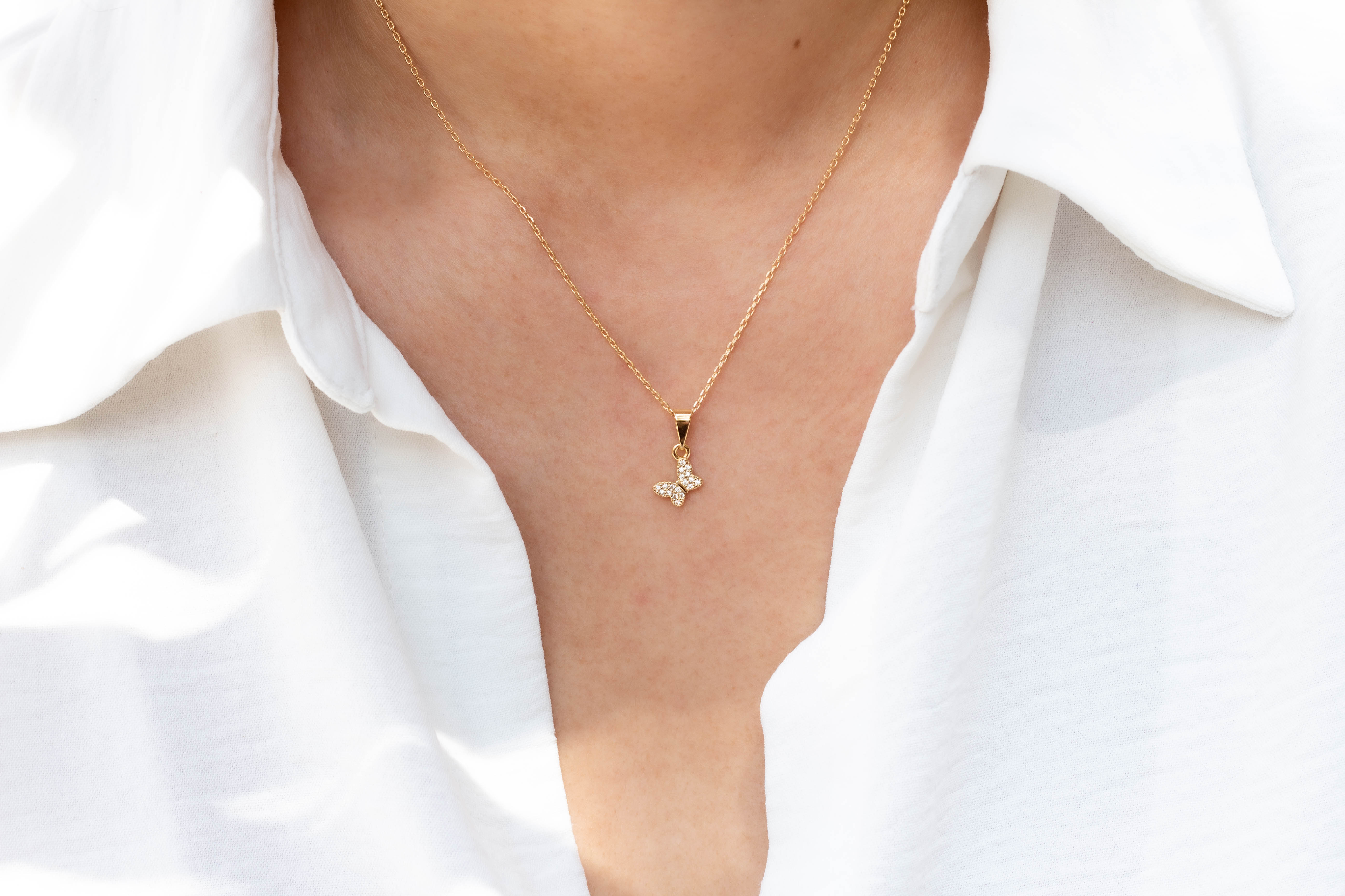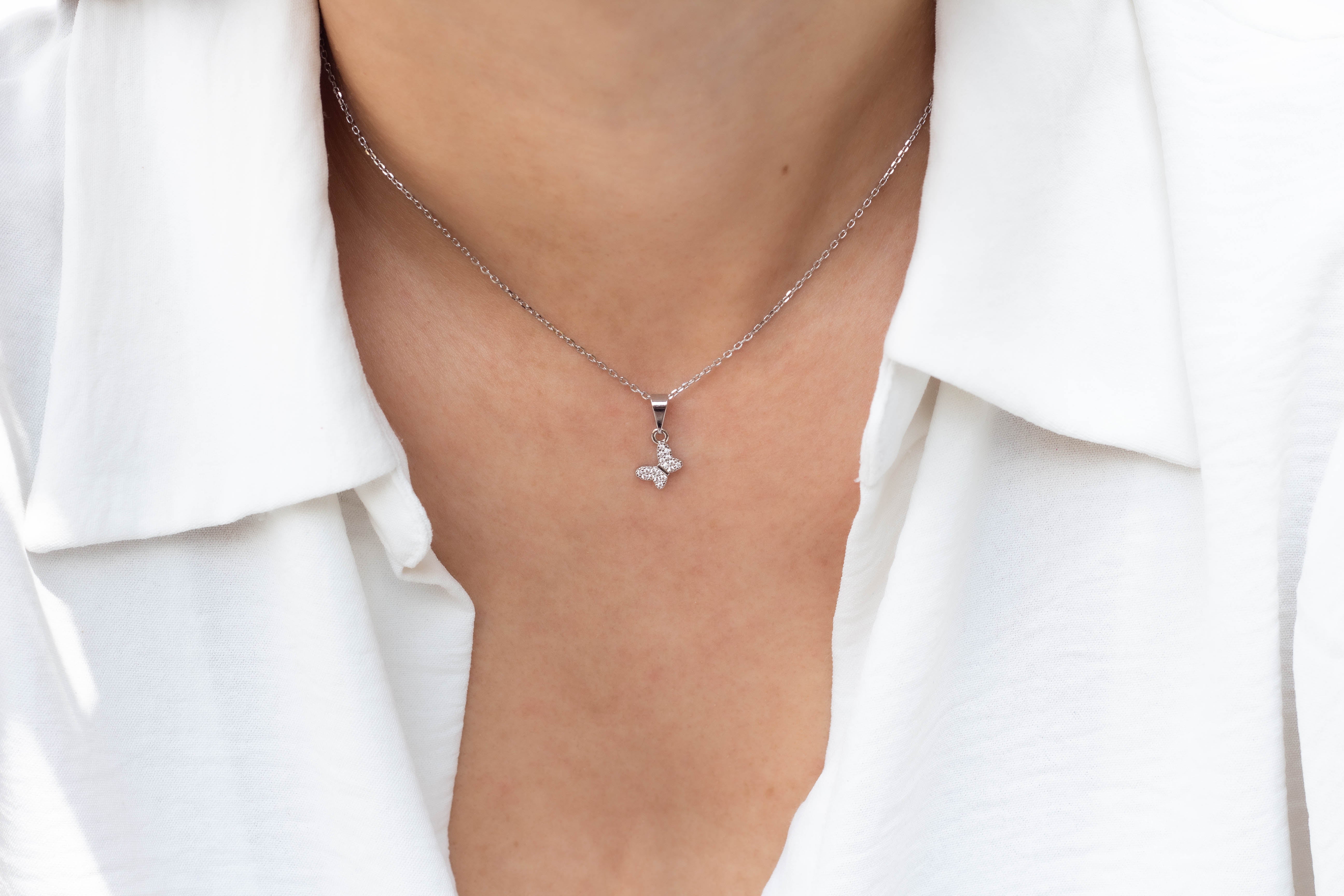 Dainty Micropave Butterfly Pendant