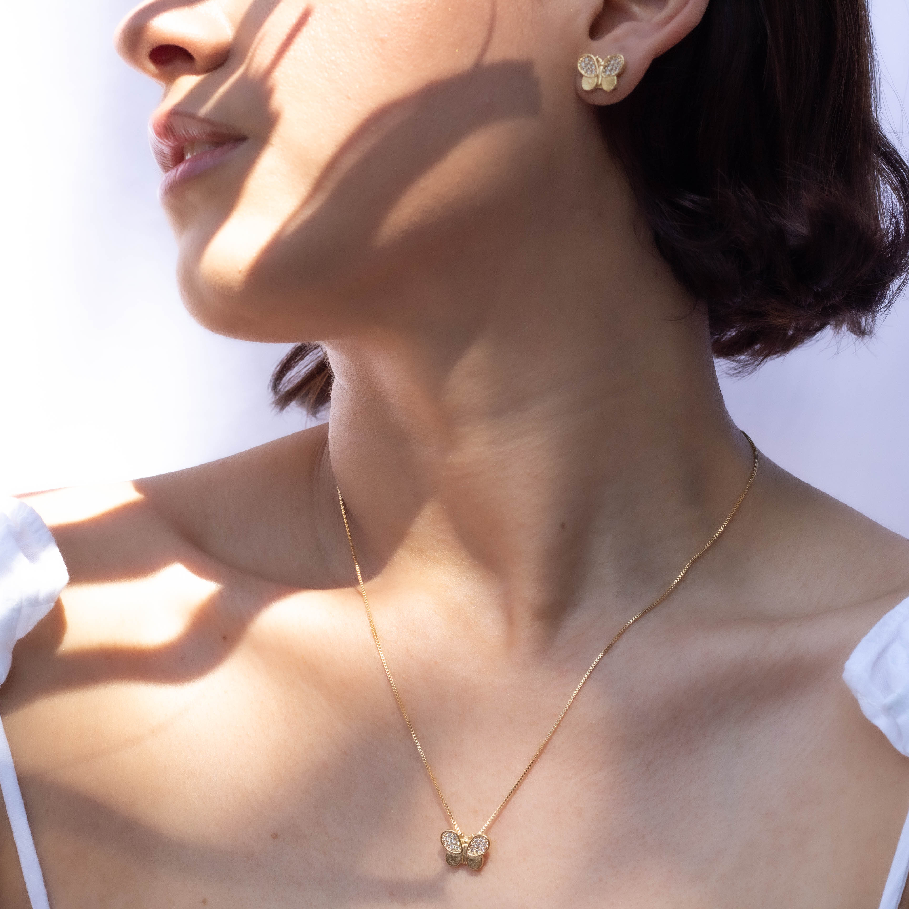 This elegant butterfly set features high-quality Cz stones that add sparkle to any outfit. Made with fine craftsmanship, this set is perfect for any occasion. Show off your sophisticated style and let the beautiful butterfly design take your fashion to the next level. 🤎