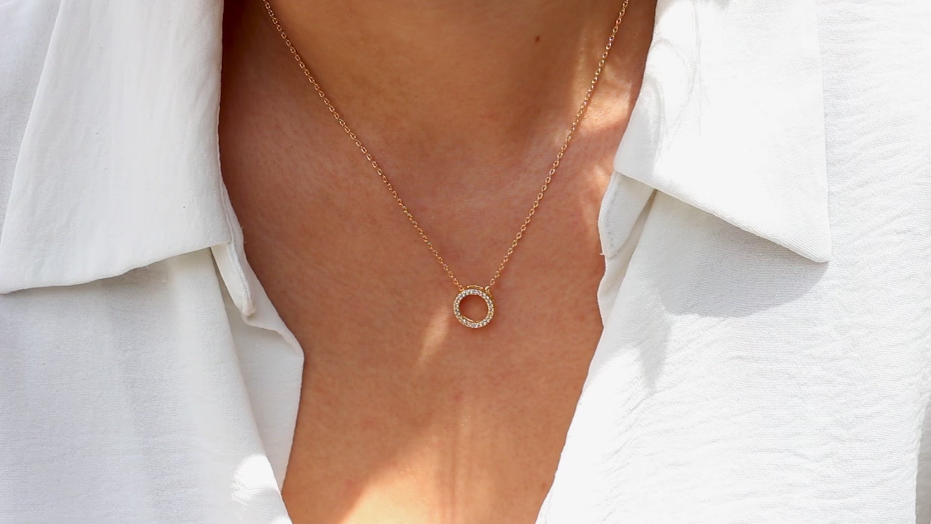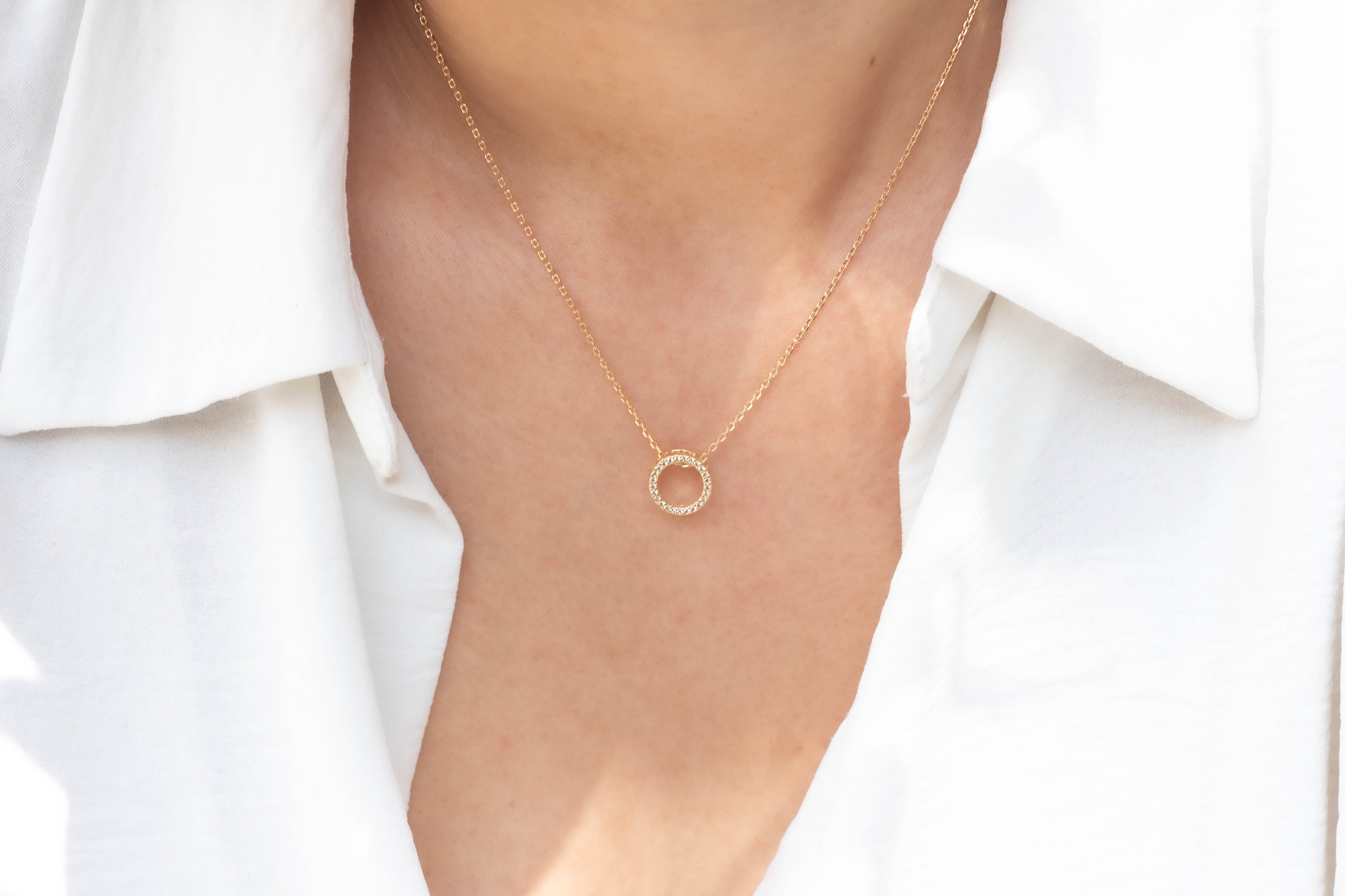 This Cz Stoned Circle Pendant is a stunning addition to any jewelry collection. The intricate design features sparkling cubic zirconia stones, adding an elegant touch to any outfit. Made with high-quality materials, this pendant is both durable and beautiful. Perfect for gifting or treating yourself. 🤎