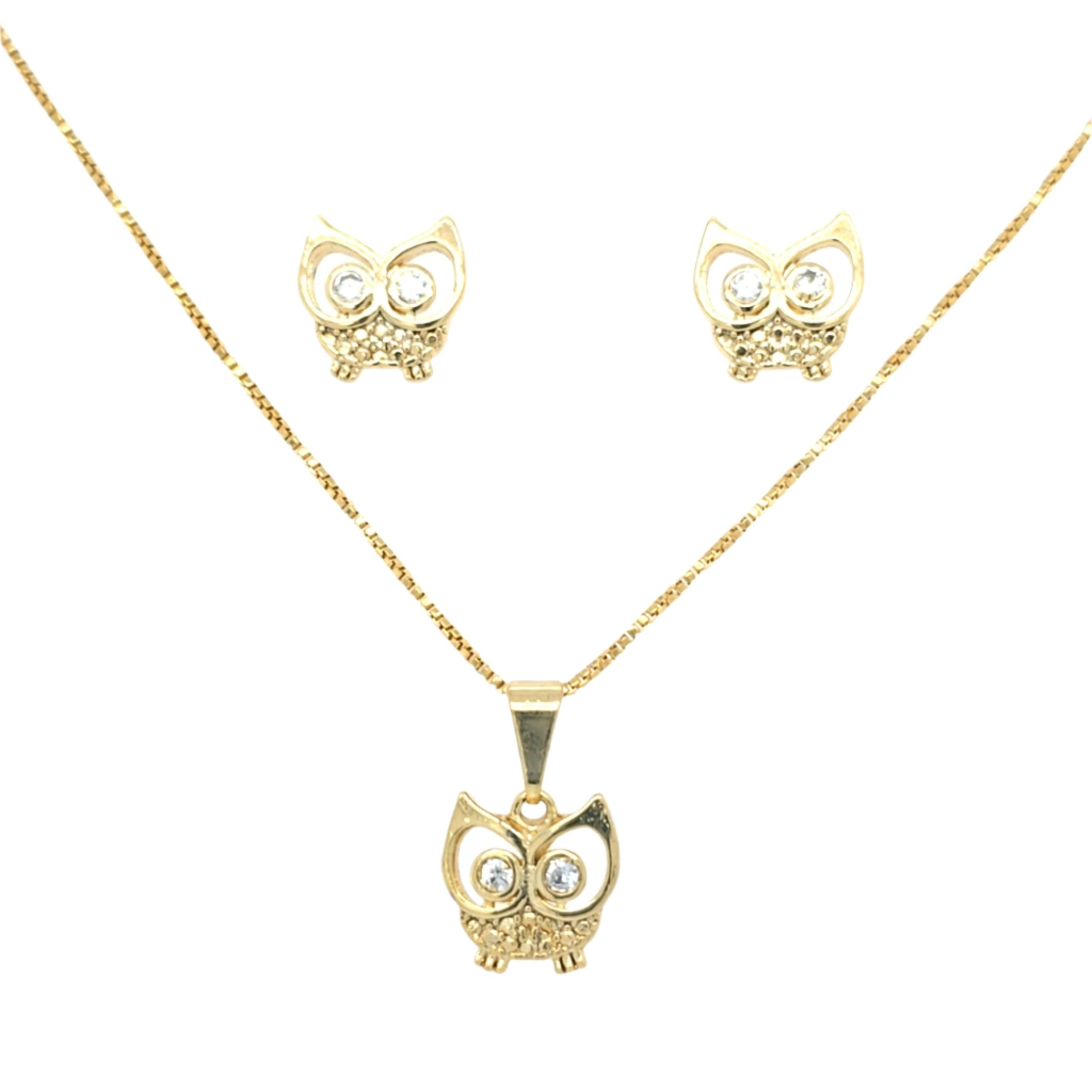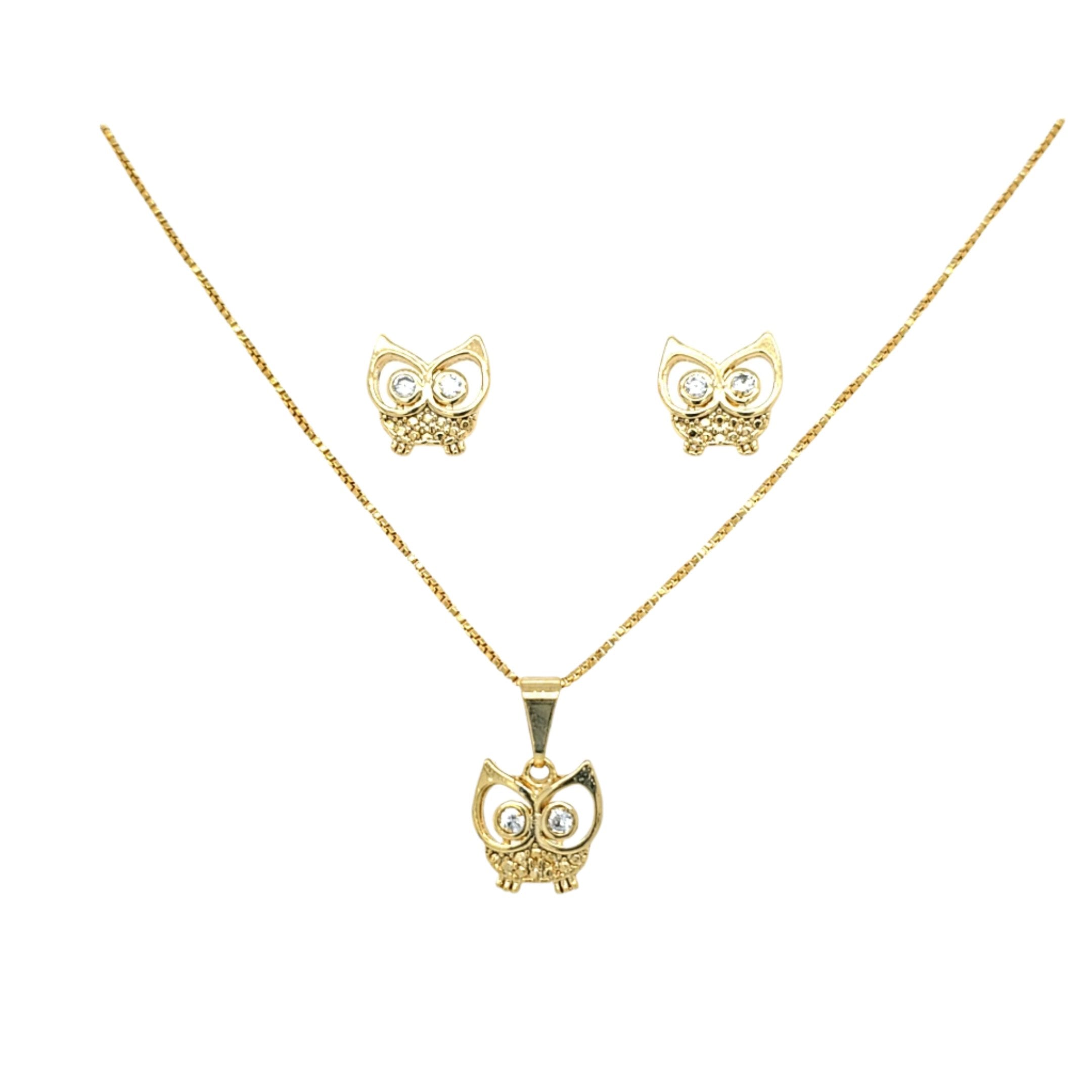 Delight in the charm of this owl-inspired jewelry set. Featuring a finely detailed pendant and matching earrings, this design symbolizes wisdom and elegance. The golden finish adds a timeless touch, making it perfect for enhancing both everyday and special occasion outfits. A thoughtful gift or a stylish addition to your collection! 🤎