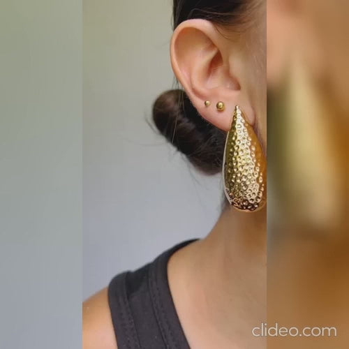 Introducing Our Hammered Gold Drops Earrings, a must have for any fashion-forward individual. Crafted with luxurious and unique shape, these earrings will elevate any outfit to a new level of sophistication. Make a statement and stand out from the crowd with these exclusive earrings. 🤎