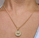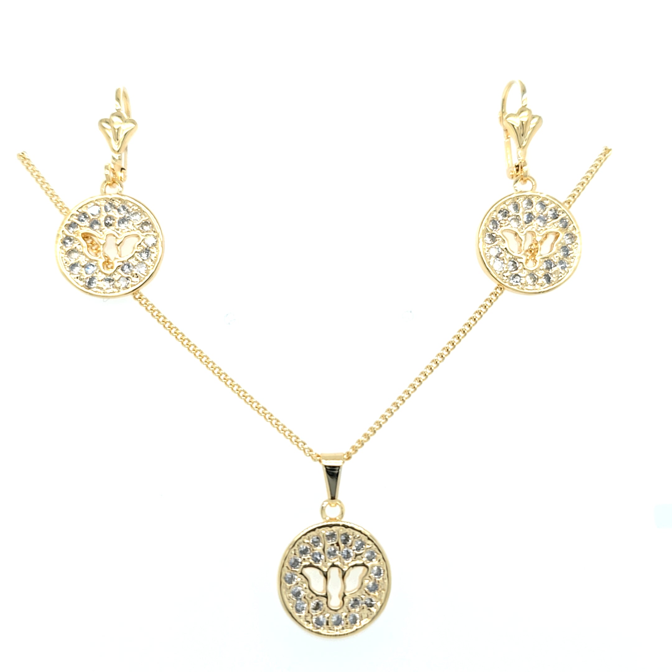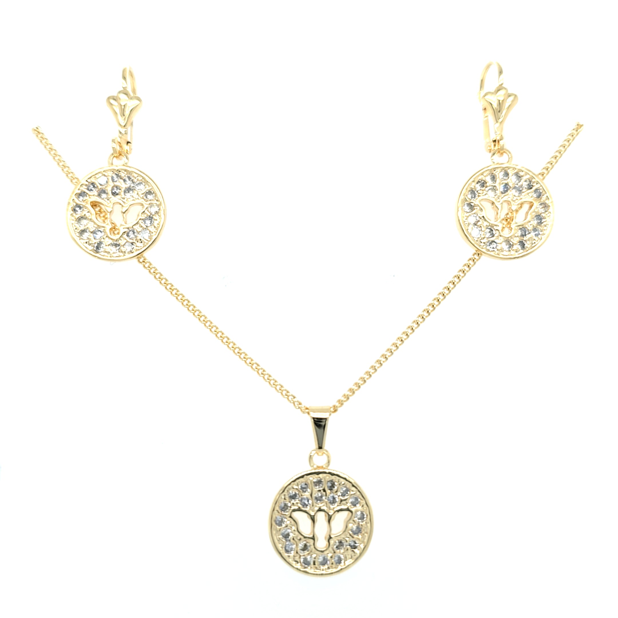 This elegant set showcases a beautifully crafted medallion featuring the symbol of the Holy Spirit, radiating faith and grace. Paired with matching earrings, this design is both timeless and inspiring, perfect for adding a meaningful touch to your everyday or special occasion look. 🤎