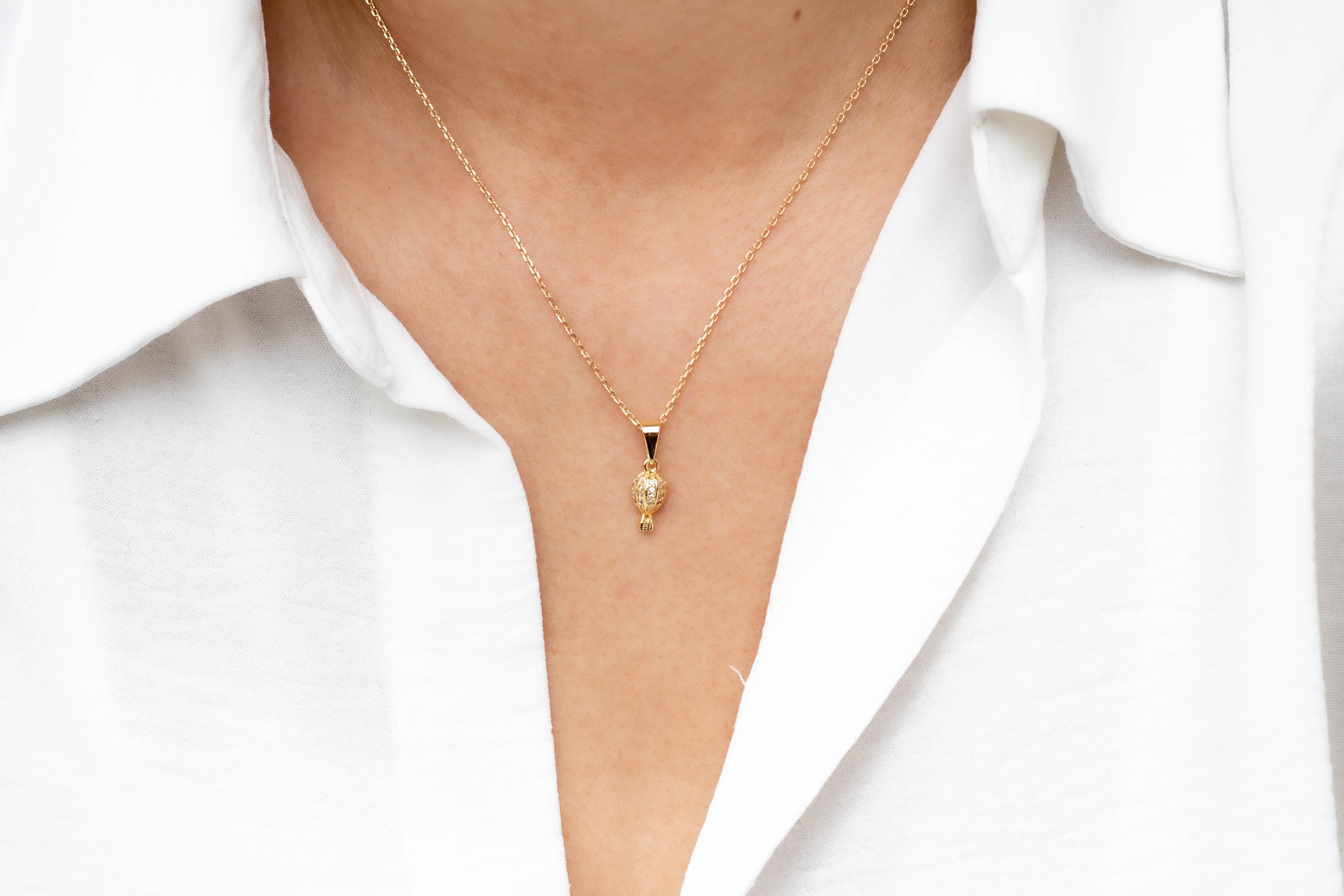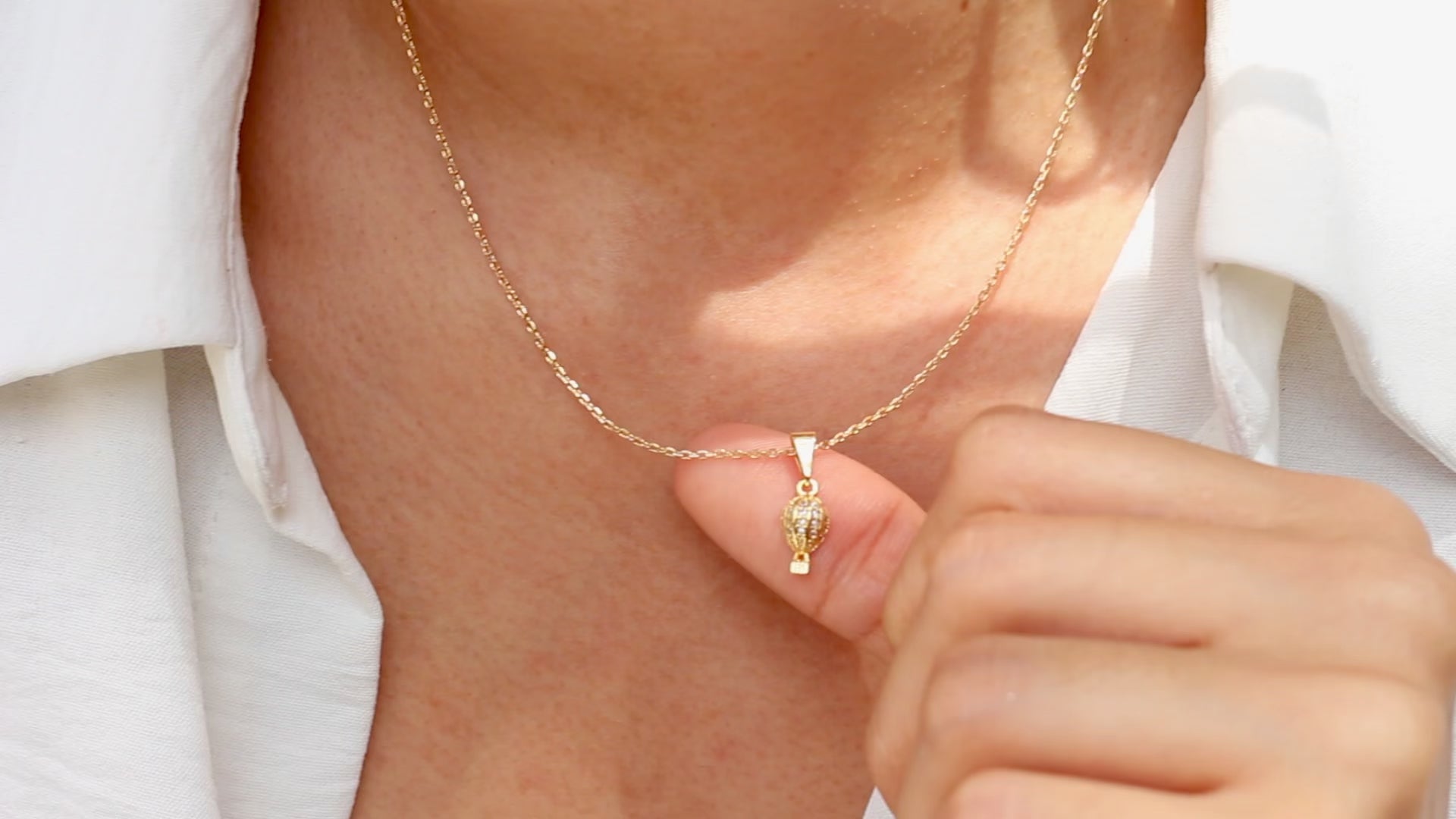 This exquisite Hot Air Balloon Pendant features delicate details and intricate design. Expertly crafted, this pendant is the perfect addition to any jewelry box. With its stunning appearance, it is sure to make a statement and elevate any outfit. Made with high-quality materials, it is also durable and long-lasting. A must-have piece for any fashion-forward individual. 🤎
