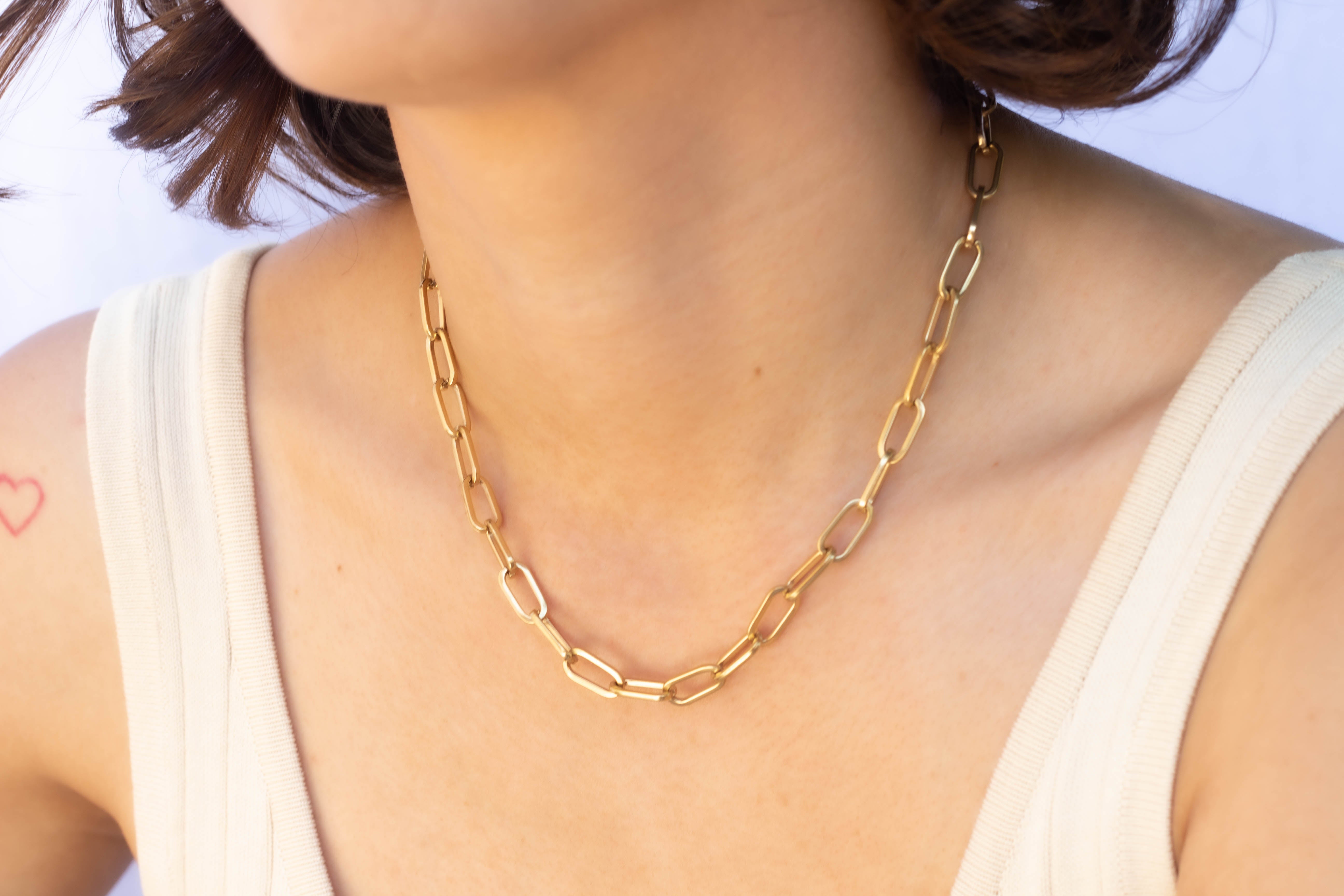 This Matte Paper Clip Link Chain is a sleek and modern accessory that adds a touch of sophistication to any outfit. Its unique design offers a trendy twist on the classic paper clip shape, making it a statement piece for any occasion. Made from high-quality materials, this chain is durable and stylish. Elevate your style game with this must-have accessory. 🤎