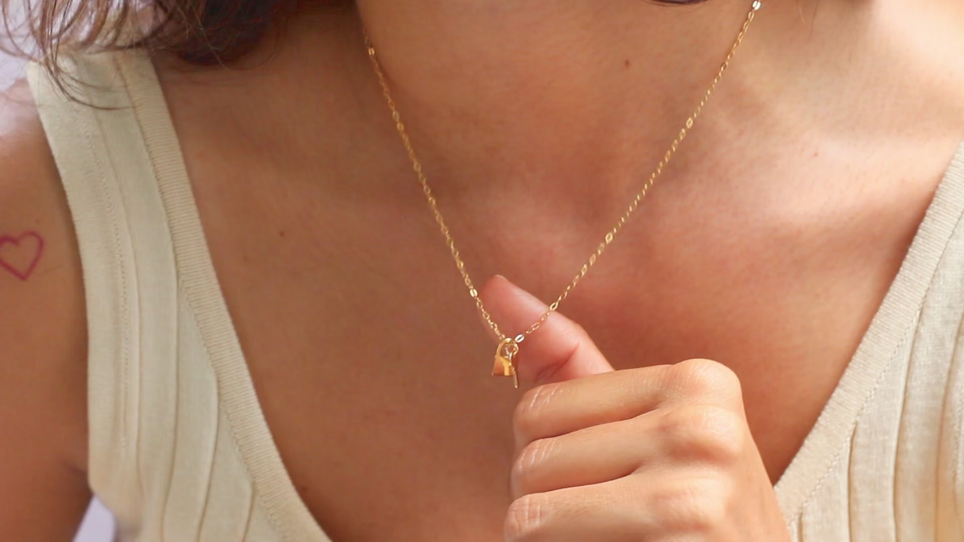 Introducing our Key Lock Pendant Necklace, a beautiful and versatile accessory that adds a touch of sophistication to any outfit. With its unique key and lock design, this necklace is perfect for symbolizing the bond between two individuals. Made with high-quality materials for long-lasting wear. 🤎