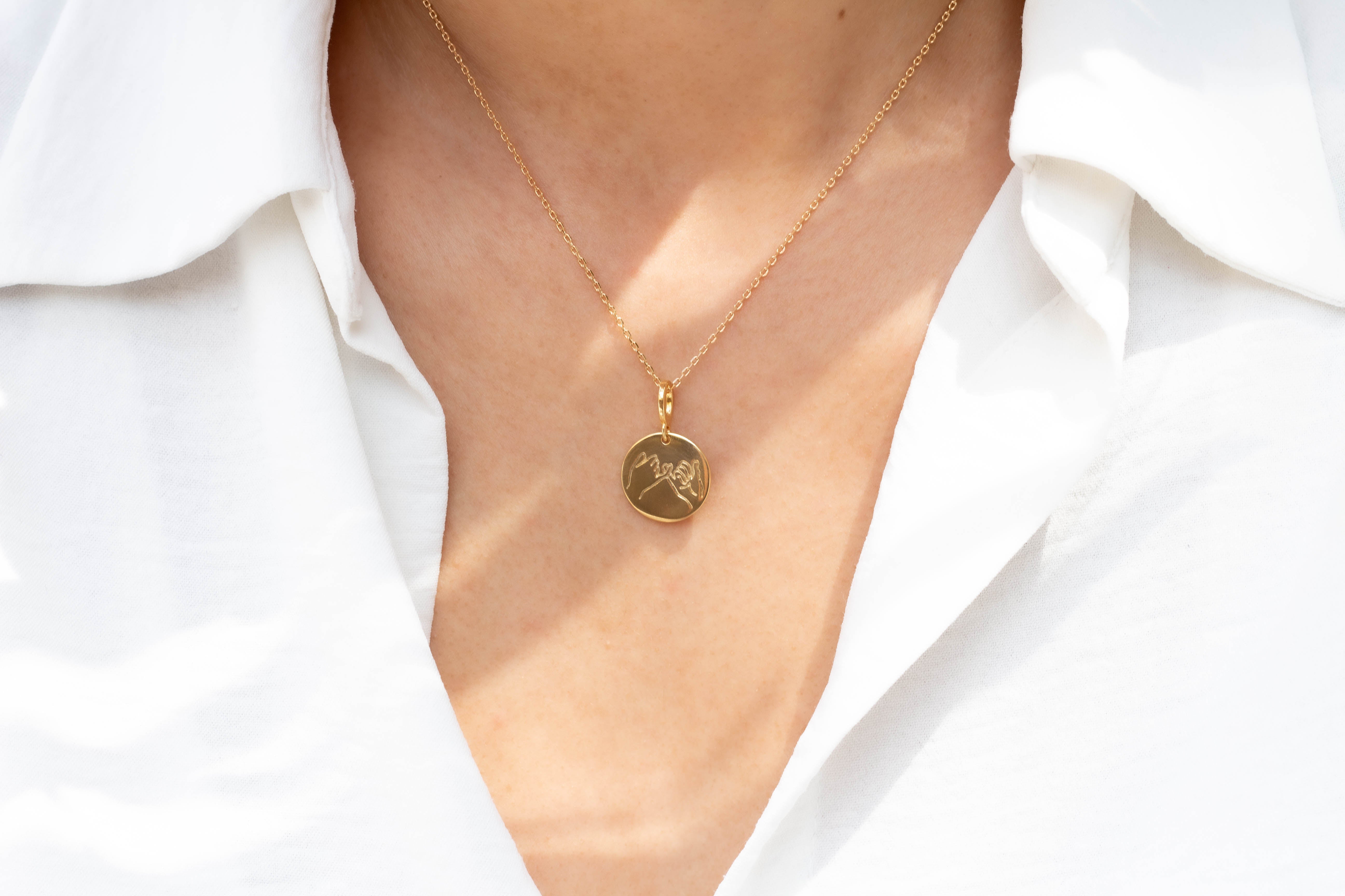 Expertly crafted, the Pinky Promise Charm comes in either gold or silver. Made with the finest materials, this charm is perfect for symbolizing the bonds of friendship and trust. Beautiful and durable, it is a timeless addition to any jewelry collection. 🤎