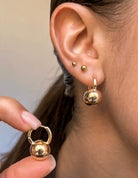 Elegant hoop earrings featuring a polished kettlebell-inspired sphere design, available in gold and silver tones. These unique and timeless pieces add a touch of modern sophistication, perfect for everyday wear or special occasions. š¤