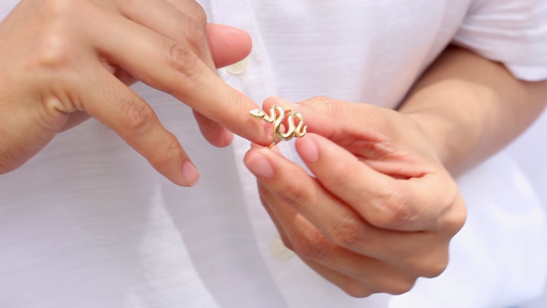 This elegant Snake Ring is expertly crafted with sleek lines and intricate details, making it a perfect choice for those who appreciate fine jewelry. Made with high-quality materials, this ring exudes sophistication and style. With its subtle yet powerful design, it is sure to make a statement wherever you wear it. 🤎