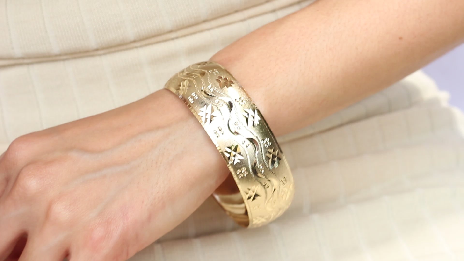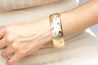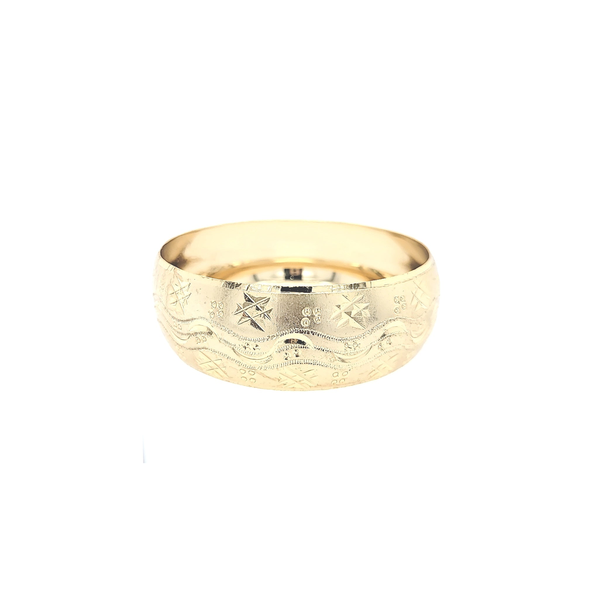 This thick diamond cut bangle boasts a timeless and elegant design that is perfect for any occasion. Crafted with expert precision, it offers a sophisticated and luxurious addition to any outfit. The intricate diamond cut detailing adds a touch of sparkle, making it a statement piece that will elevate your style. 🤎