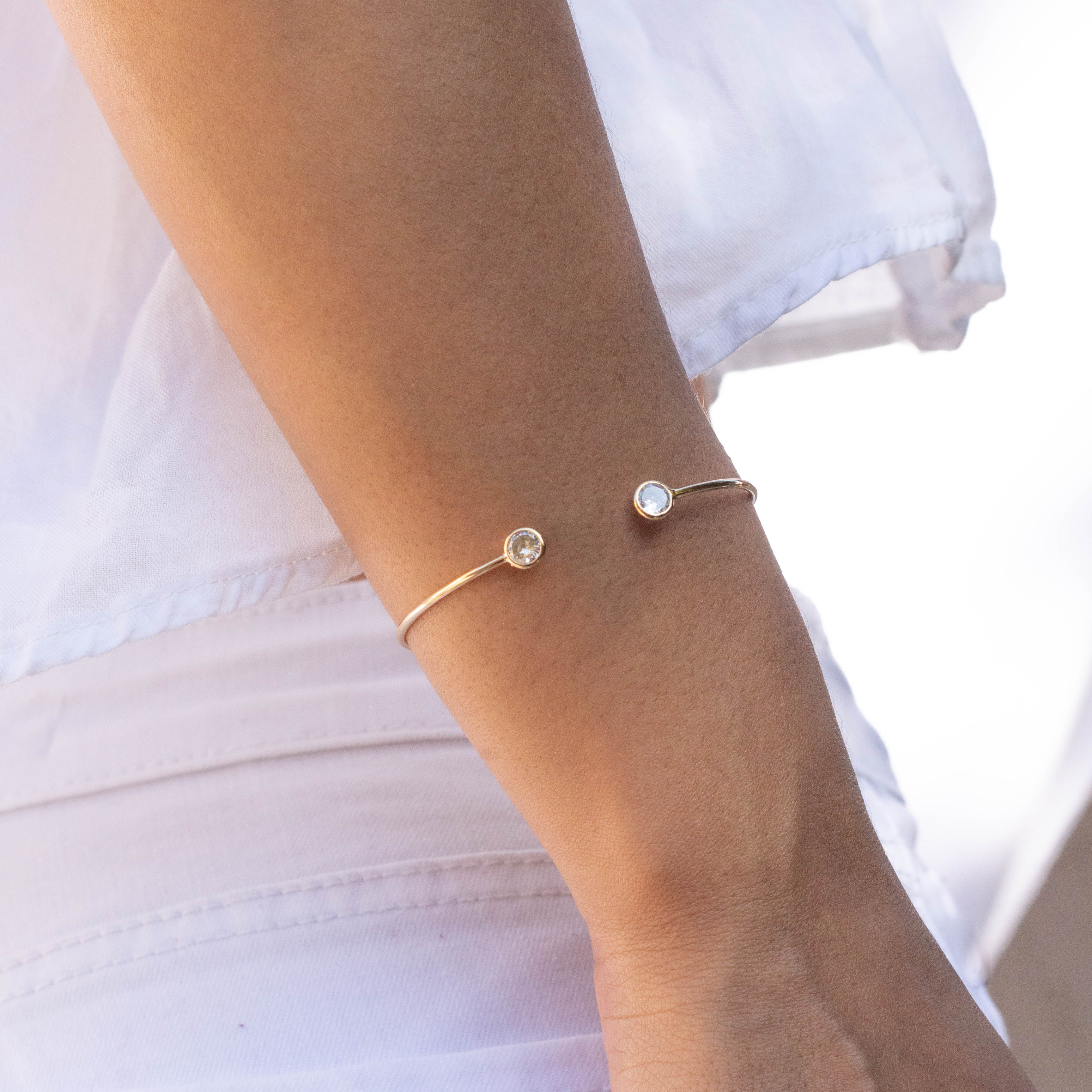 This elegant cuff bracelet is both stylish and functional. With its adjustable design, it can fit comfortably on any wrist. Made with high-quality materials, it is available in gold or silver for a luxurious touch. Perfect for any occasion, add a touch of sophistication to your wardrobe with this crystal cuff bracelet. 🤎