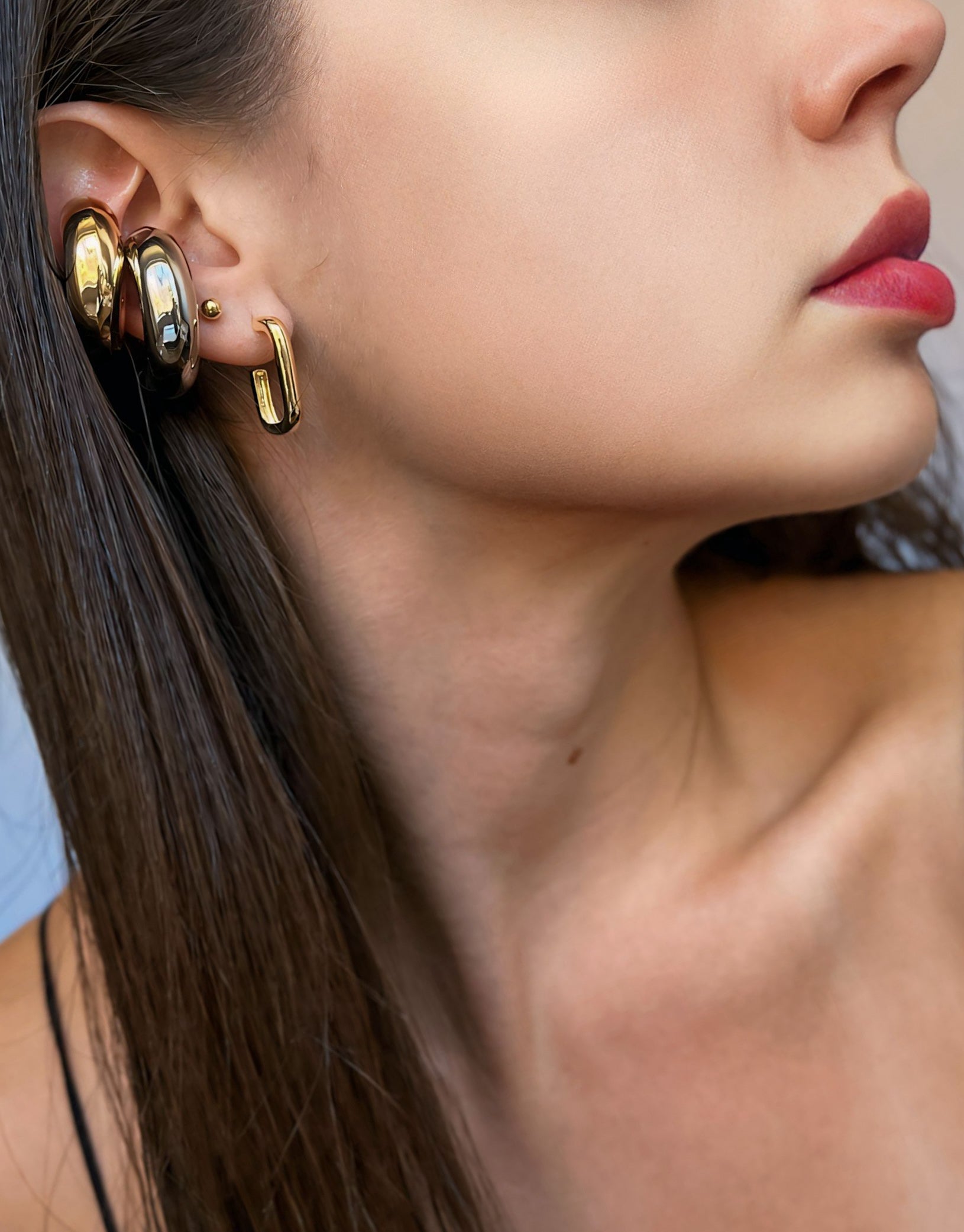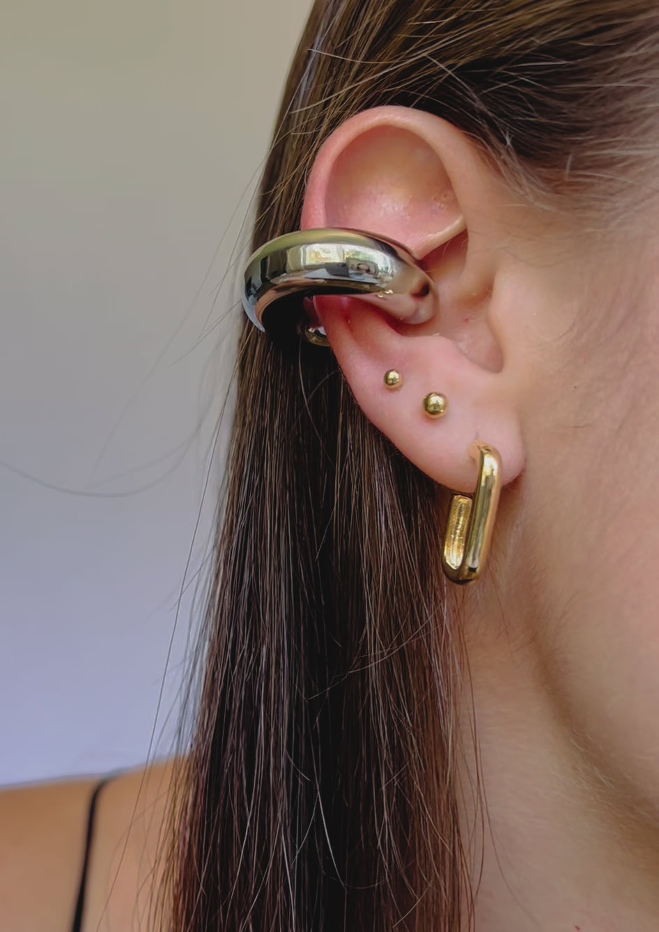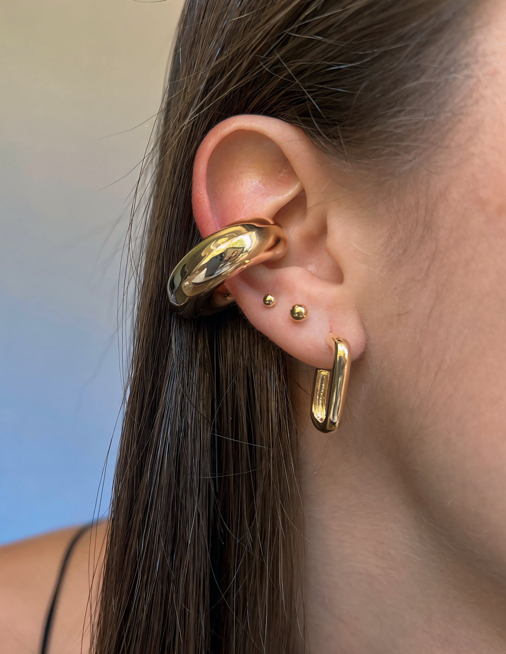 This trendy Chunky Ear Cuff is available in either gold or silver. Its unique design adds a touch of elegance to any outfit. Made with high-quality materials, this ear cuff is a must-have for any fashion-forward individual looking to make a statement with their accessories. 🤎