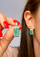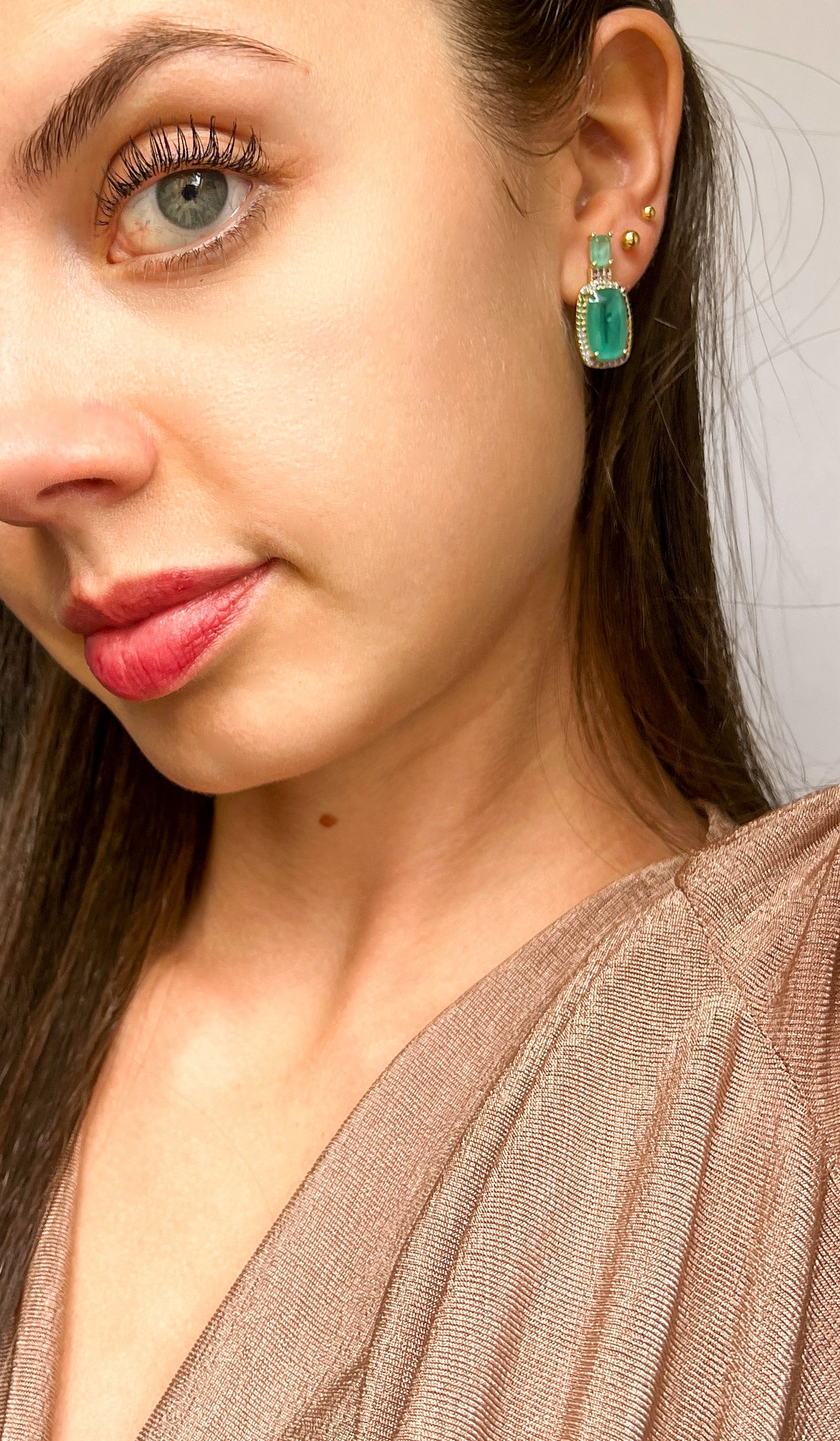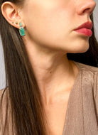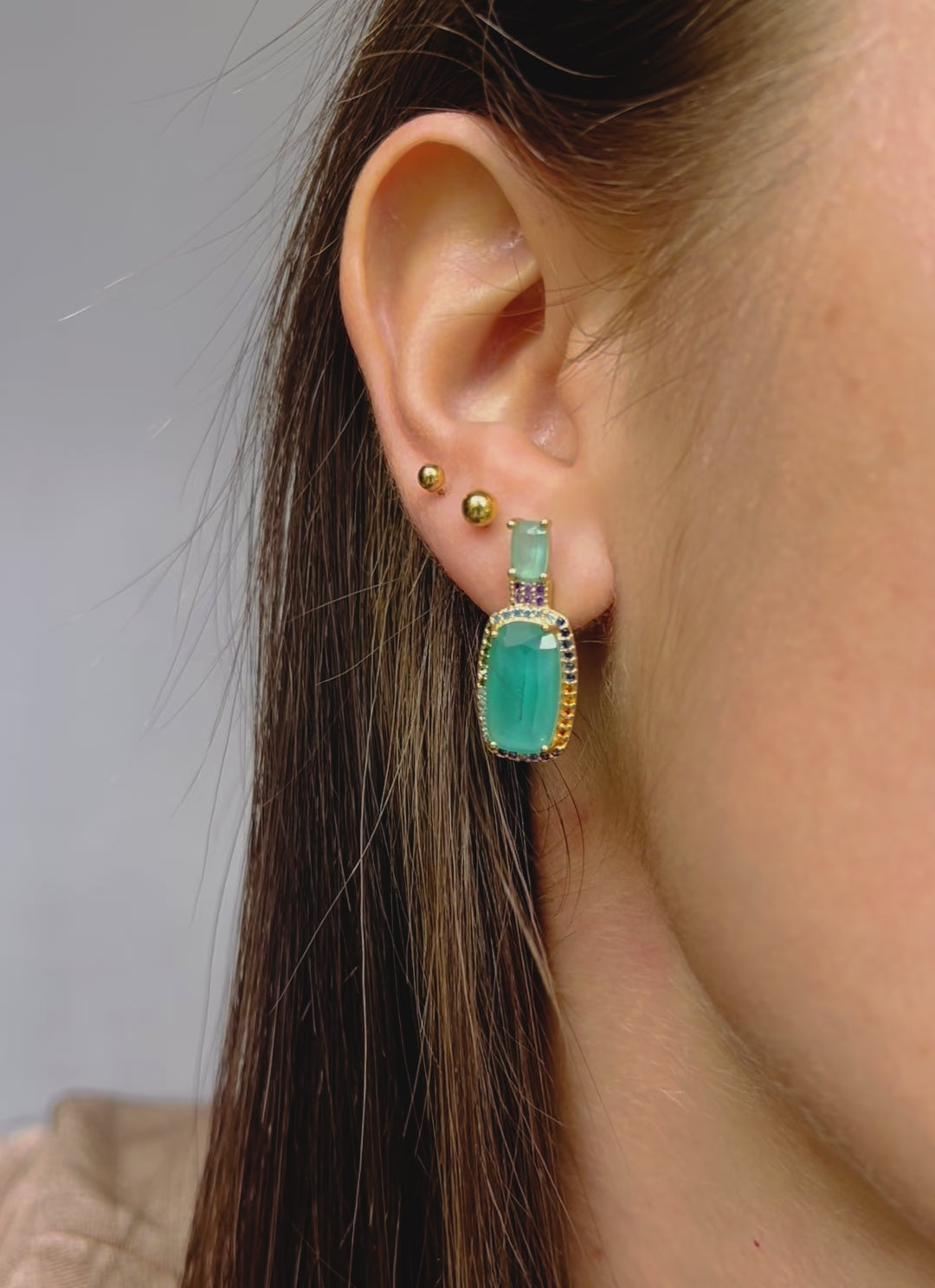Elegant earrings featuring a captivating green stone framed by a vibrant rainbow of delicate accents. Designed to add a touch of sophistication and charm, these earrings are a perfect choice for any occasion. 🤎