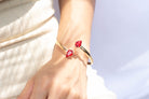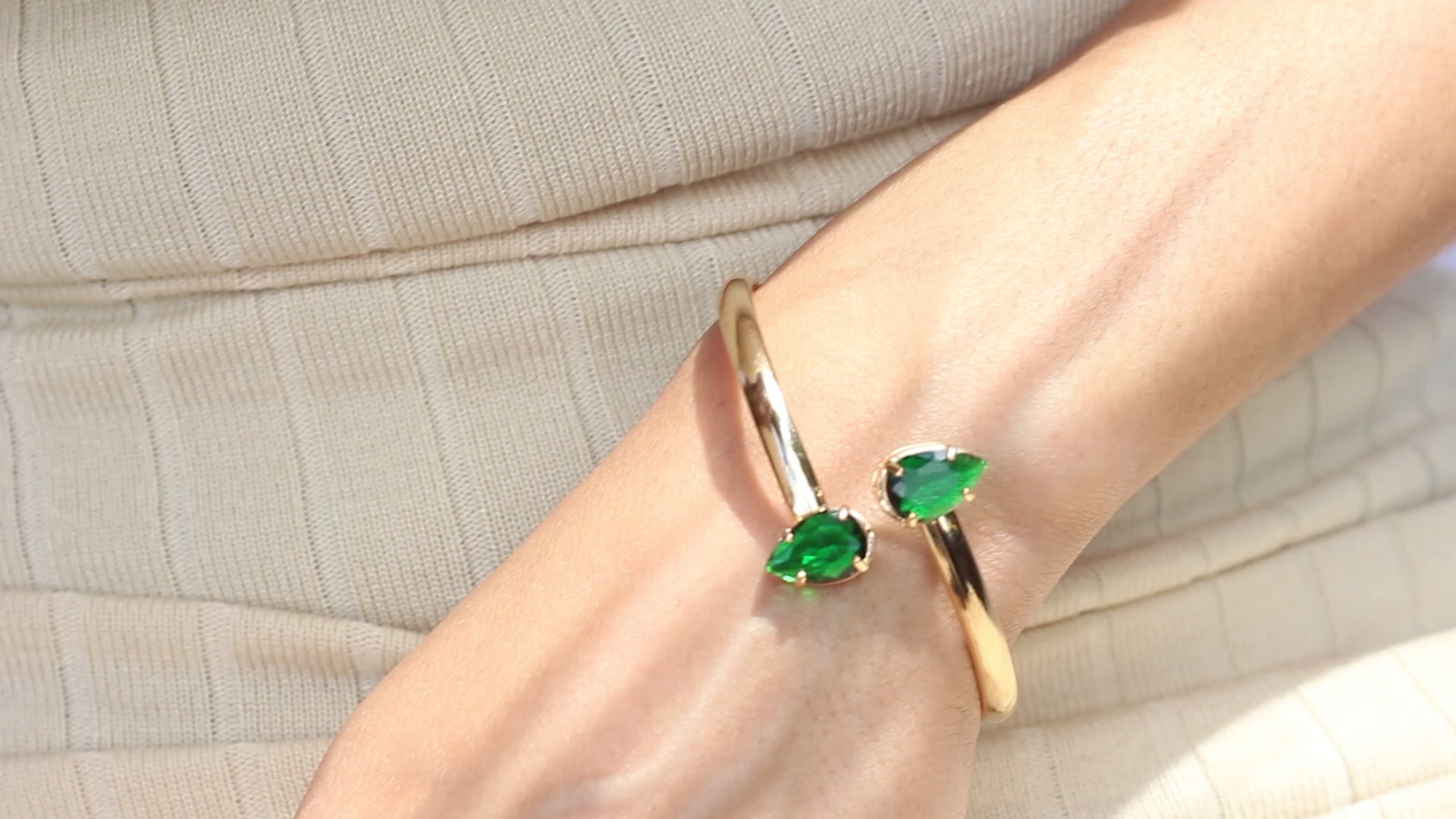 Our Two Stone Drops Bangle is a stunning addition to any collection. The crystals boast a striking clarity and come in your choice of vibrant green, crystal clear or rich red. Add a touch of elegance with this versatile piece. 🤎