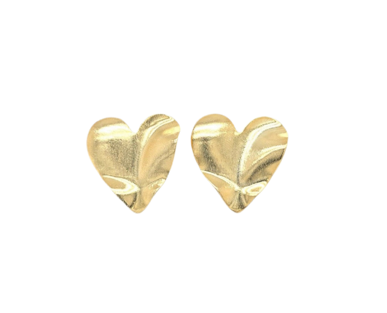 Vintage Geometric Irregular Heart Hammered Chunky Stud Earrings
